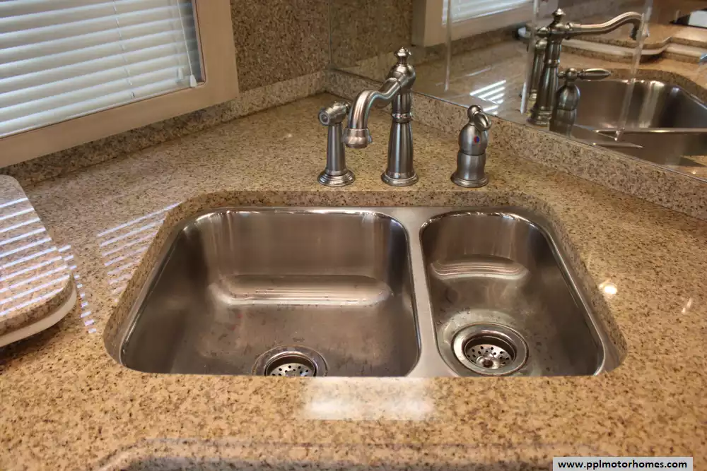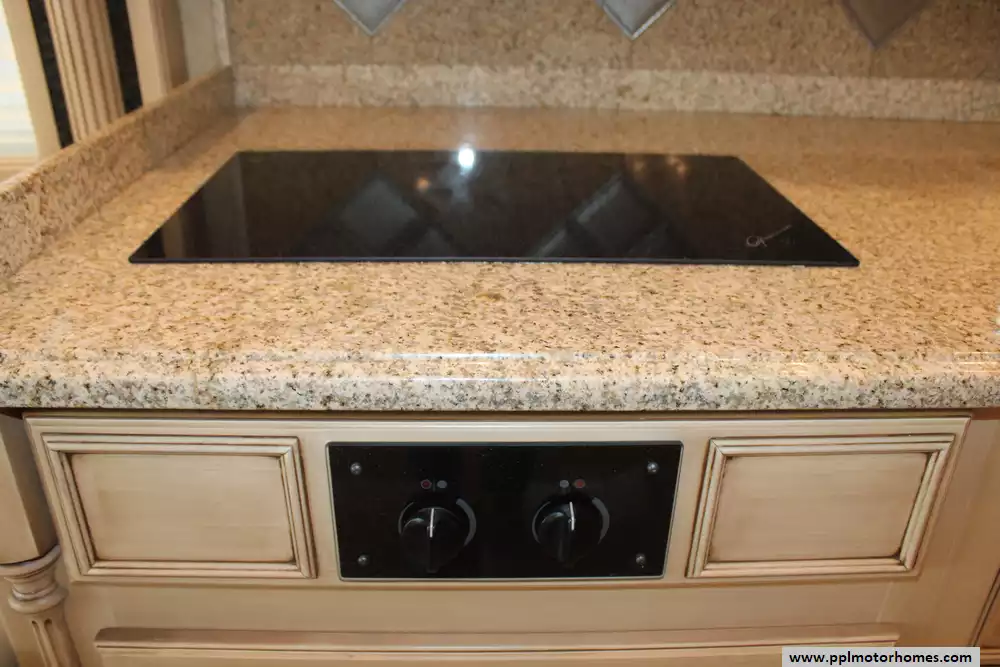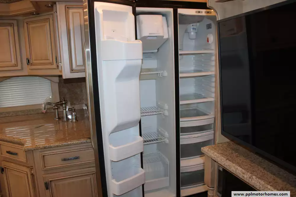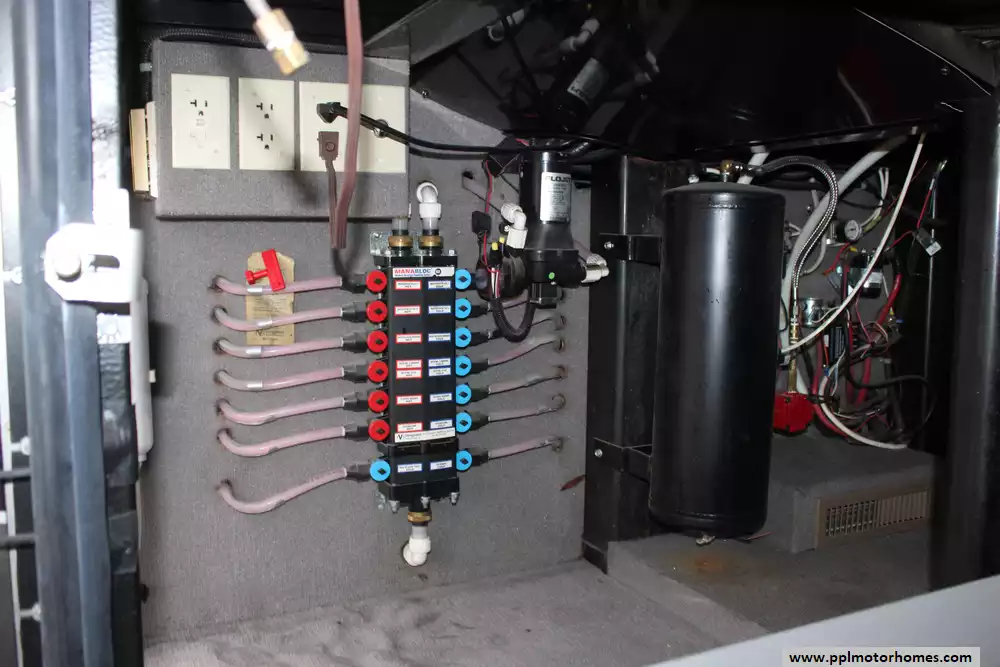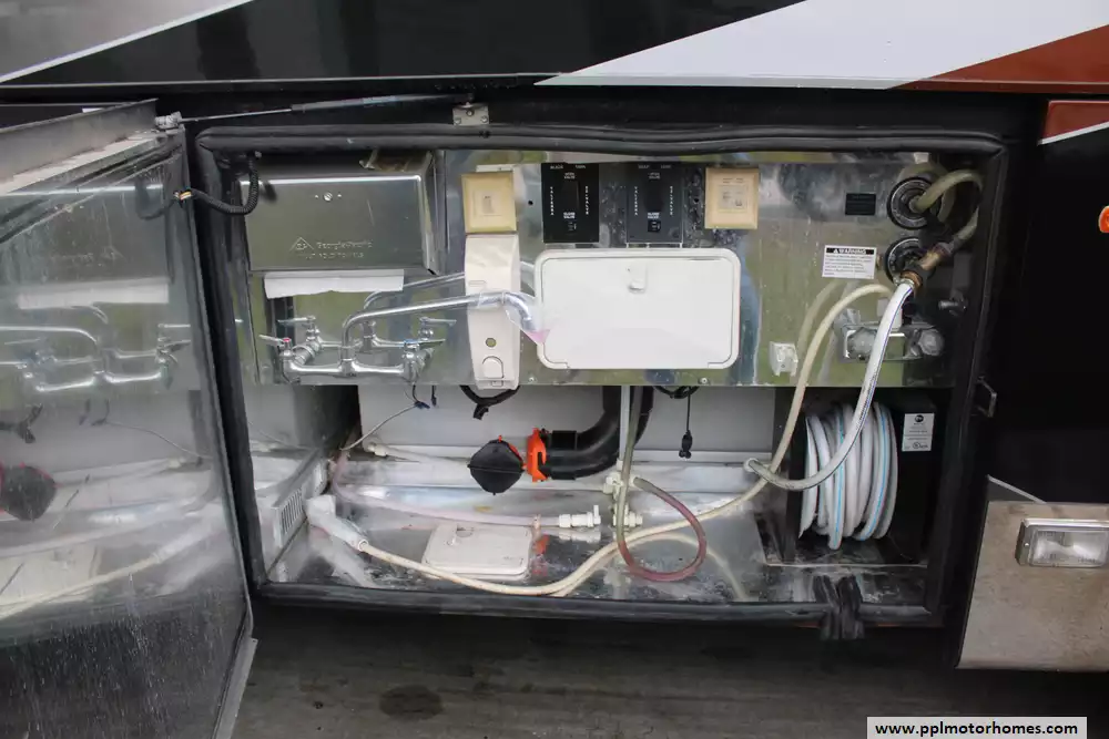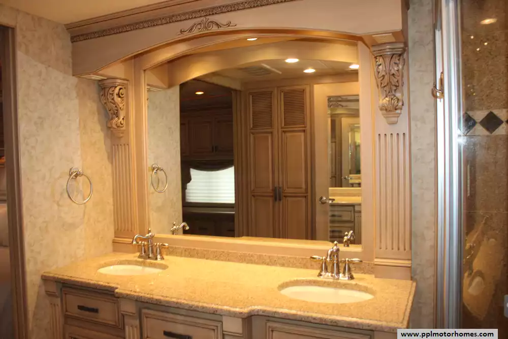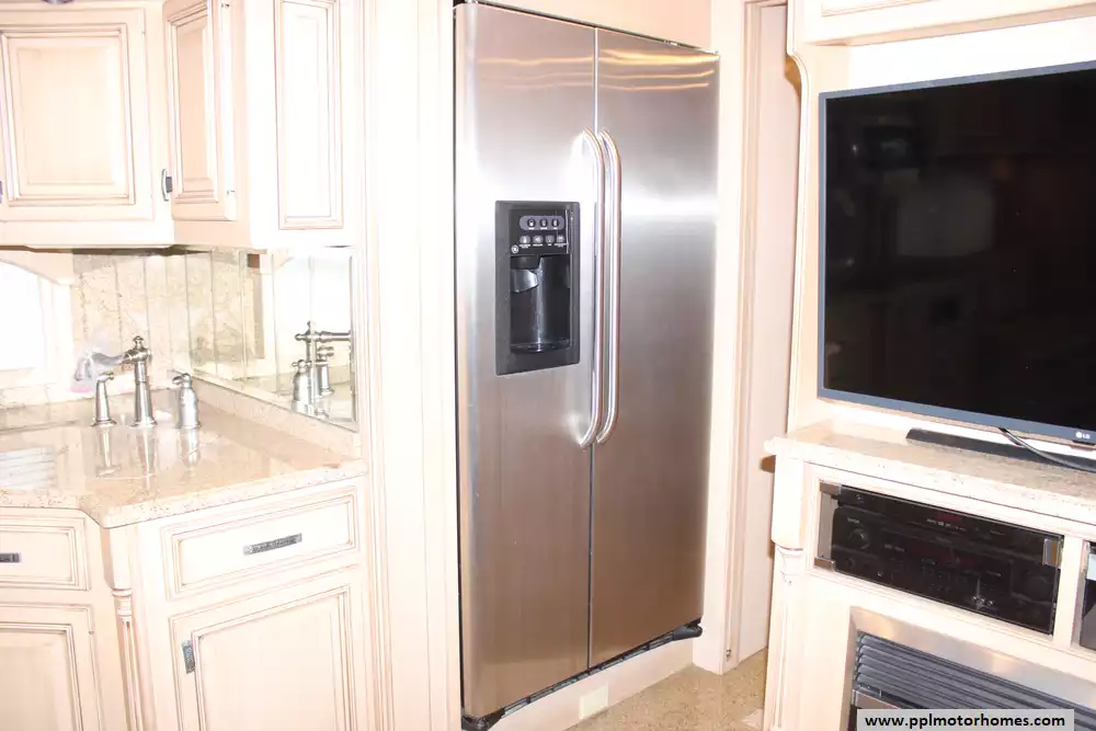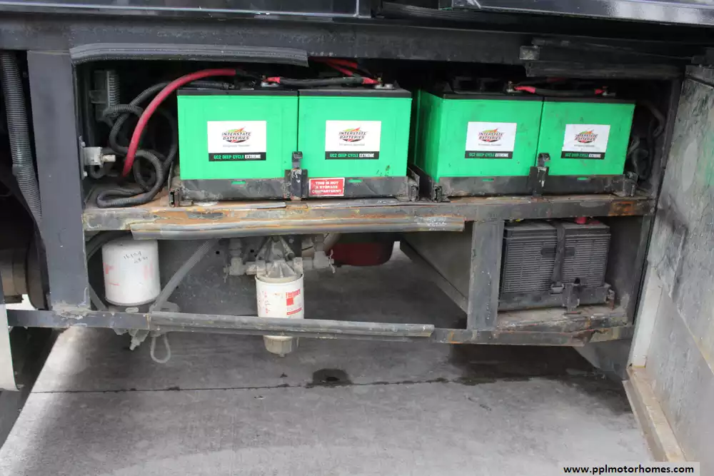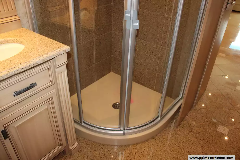Specs: Length: 44.11 ft., Width: 8.41 ft., Height: 13.1 ft., Interior Height: 7 ft., Interior Width: 8 ft., Fuel Capacity: 150 gal., Total Fresh Water Tank Capacity: 100 gal., Total Gray Water Tank Capacity: 60 gal., Total Black Water Tank Capacity: 60 gal.