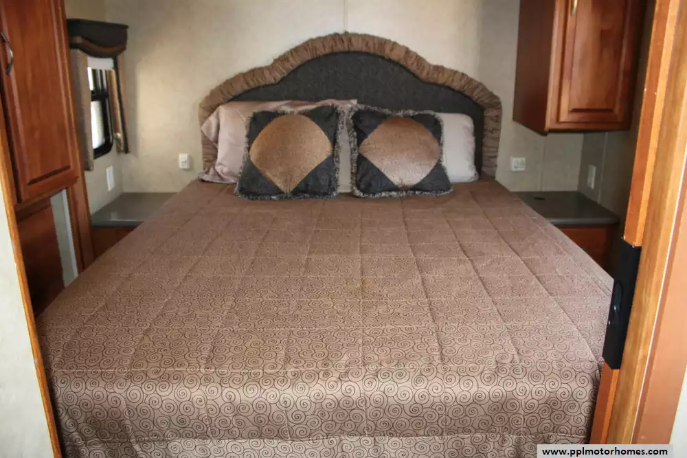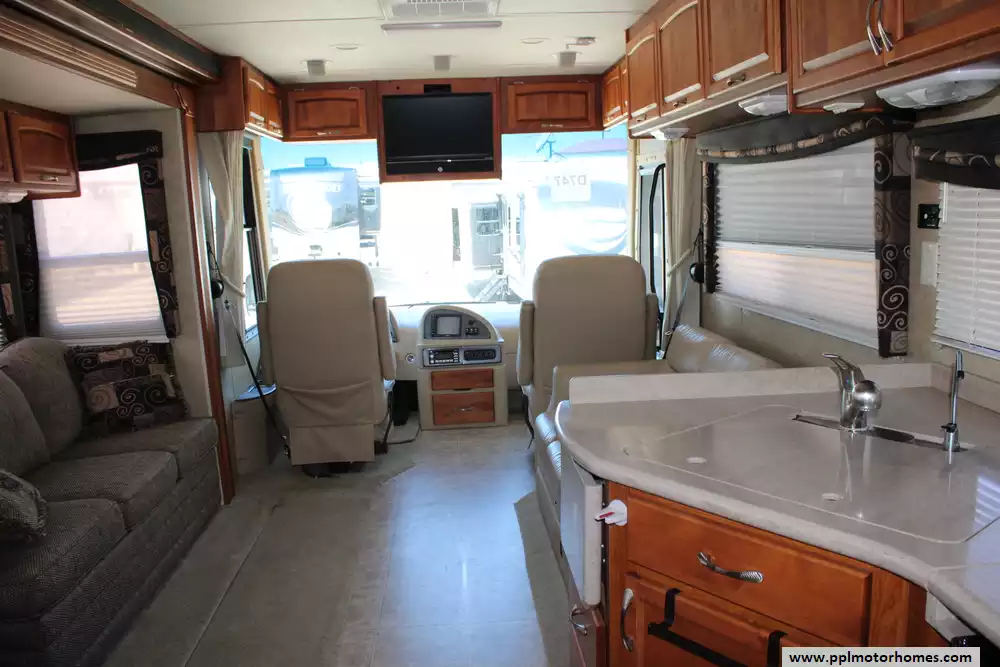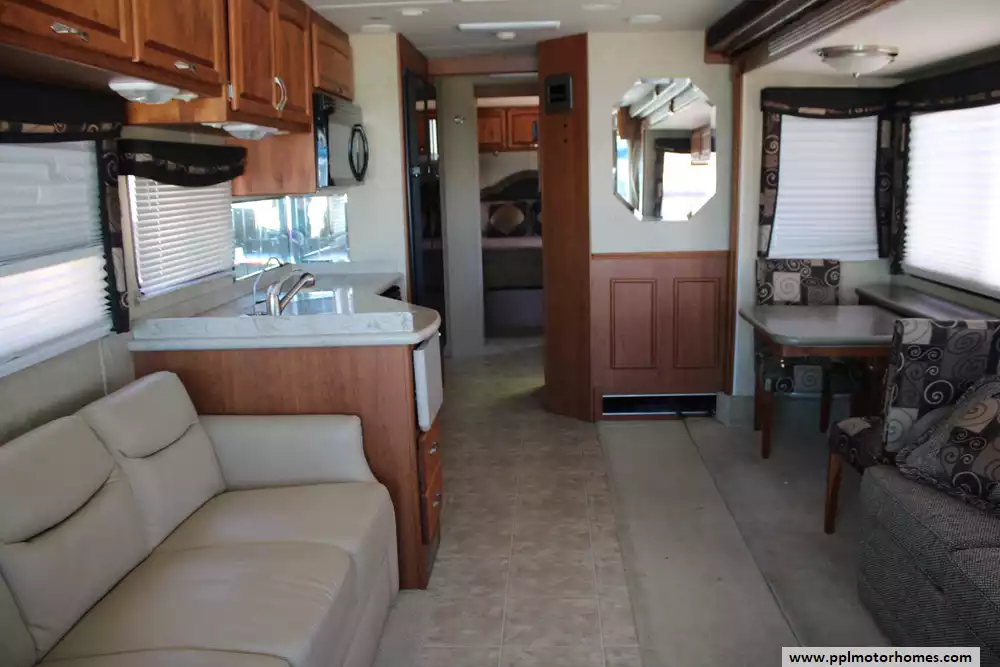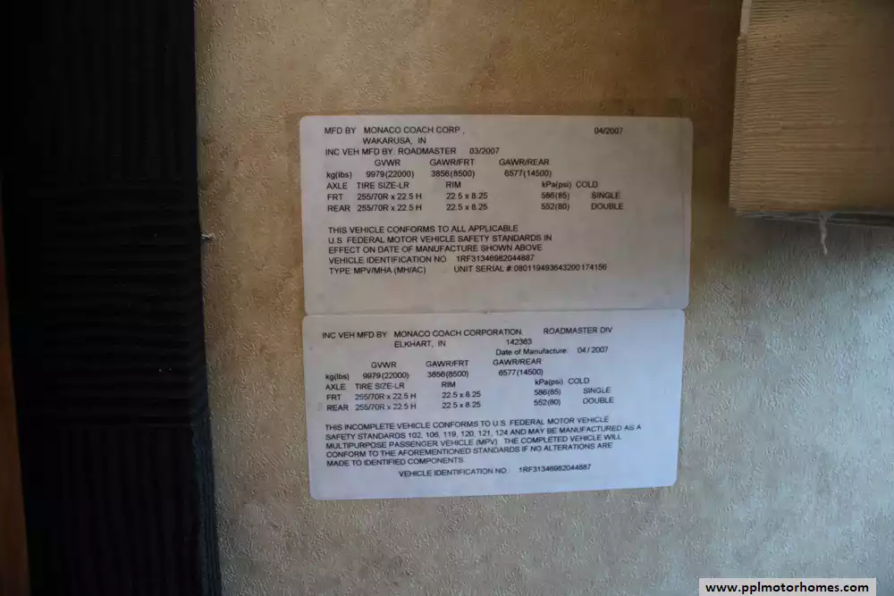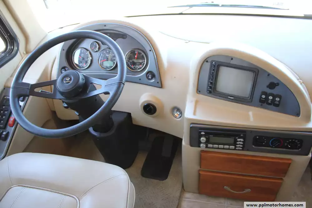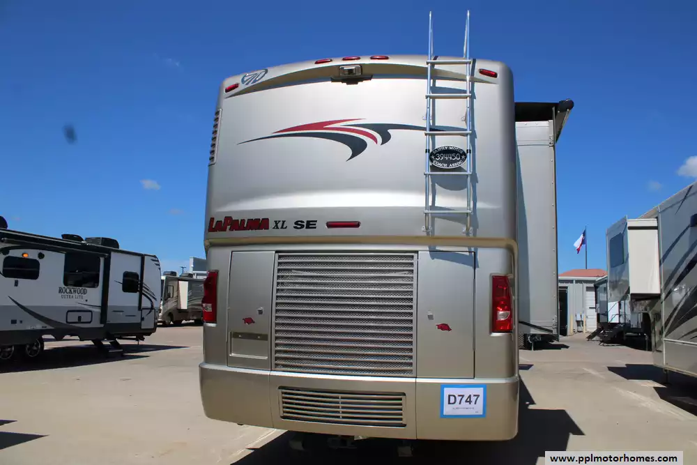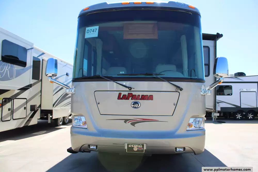 The 2008 Monaco LaPalma XL 36WBD is a Class A diesel motorhome designed for travelers seeking a balance of comfort, performance, and value. Built on the Roadmaster RSR rail chassis, it features a 340-horsepower Cummins ISB 6.7L turbocharged diesel engine paired with an Allison 6-speed automatic transmission, delivering 660 lb-ft of torque and a 5,000-pound towing capacity. With an overall length of 37.5 feet and two slide-outs, the 36WBD offers a spacious interior with a queen-size bed, convertible sofa beds, and a full kitchen with a three-burner cooktop, convection microwave, and dual-door refrigerator. The coach includes a 75-gallon fuel tank, 90-gallon fresh water capacity, and 60-gallon gray water capacity, making it suitable for extended trips. Additional amenities include dual 13,500 BTU air conditioners, a 35,000 BTU furnace, and a 10-gallon water heater. The exterior features full-body paint, slide-out awnings, and an electric patio awning. With a gross vehicle weight rating (GVWR) of 25,500 pounds and a gross combined weight rating (GCWR) of 26,000 pounds, the LaPalma 36WBD offers a blend of luxury and practicality for discerning RV enthusiasts.