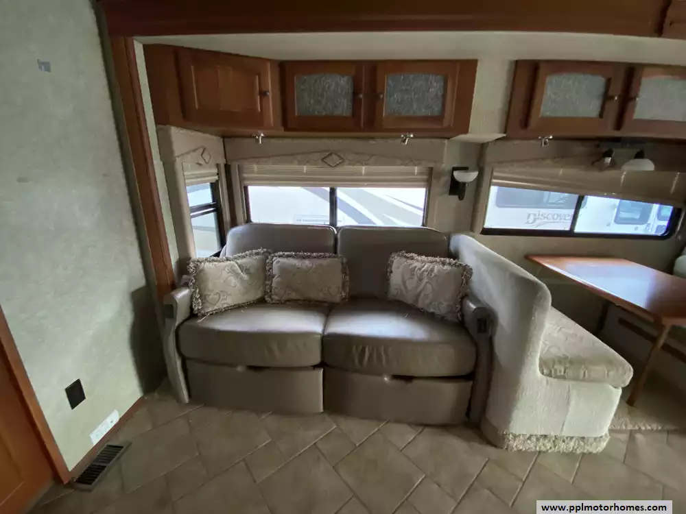 This 2008 Winnebago Vectra 40TD has an Air Bag Suspension, Exhaust Brake, 2 Slide-outs, Onan Diesel Generator, Basement A/C, Levelers, 4 Door Norcold Refrigerator, In-Fridge Ice Maker, Automatic Main Awning And Window/Slide/Door Awnings, Washer/Dryer, Backup Camera, Solar Panel, Dishwasher, Satellite Dish & Receiver, Outside Entertainment System, 2 TVs, DVD Player, Outside Shower, Convection Microwave, 3 Burner Range