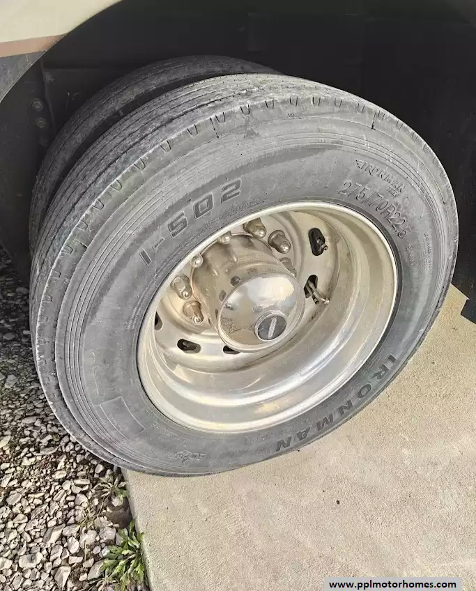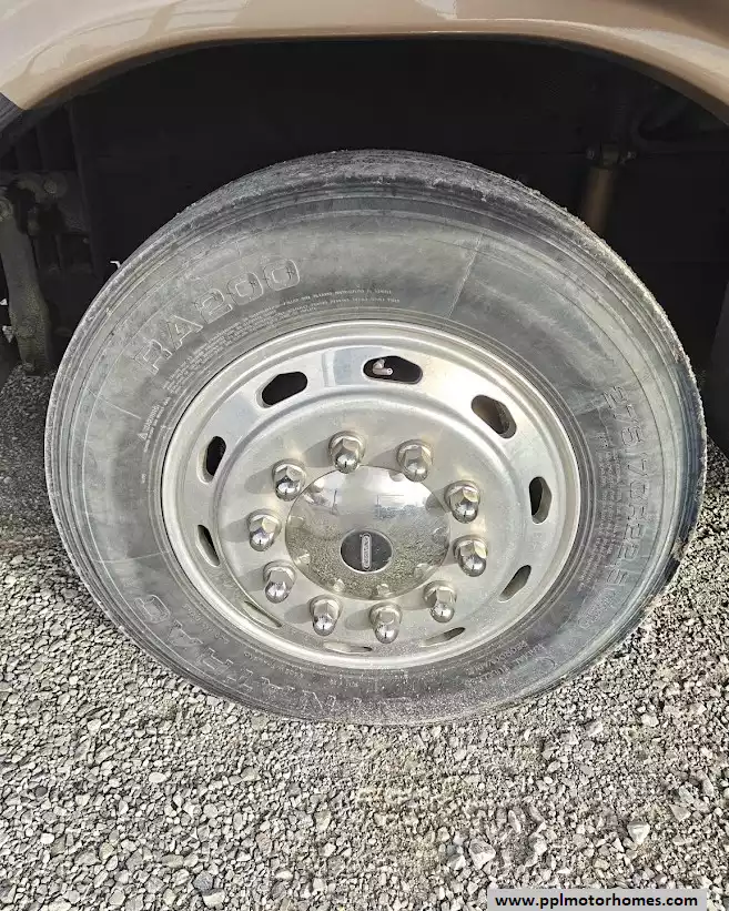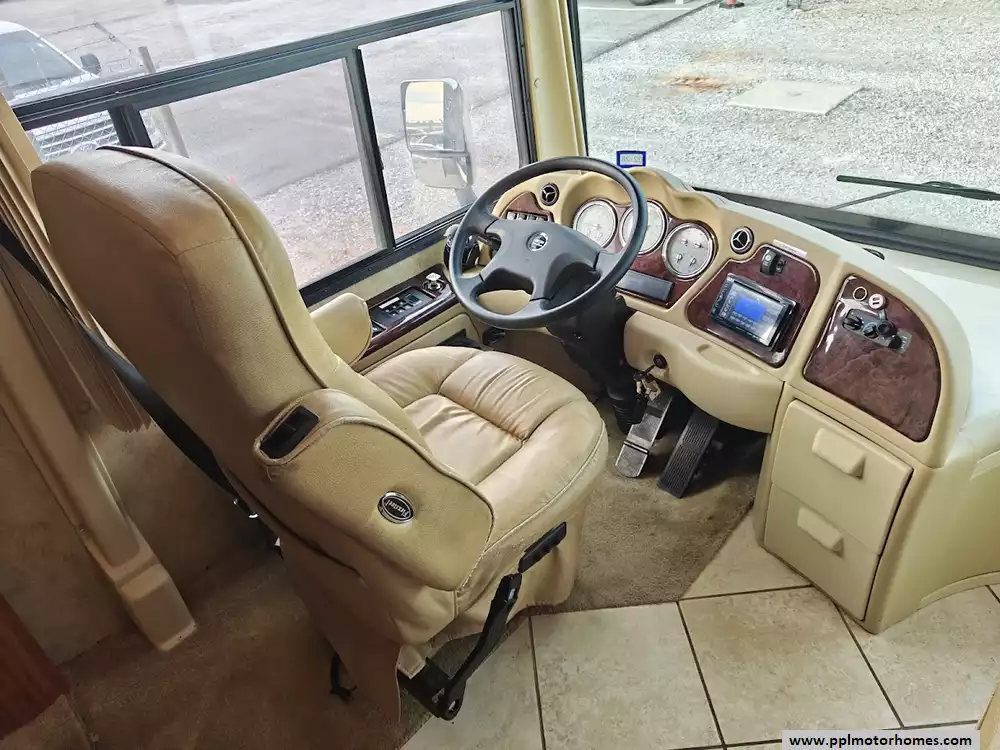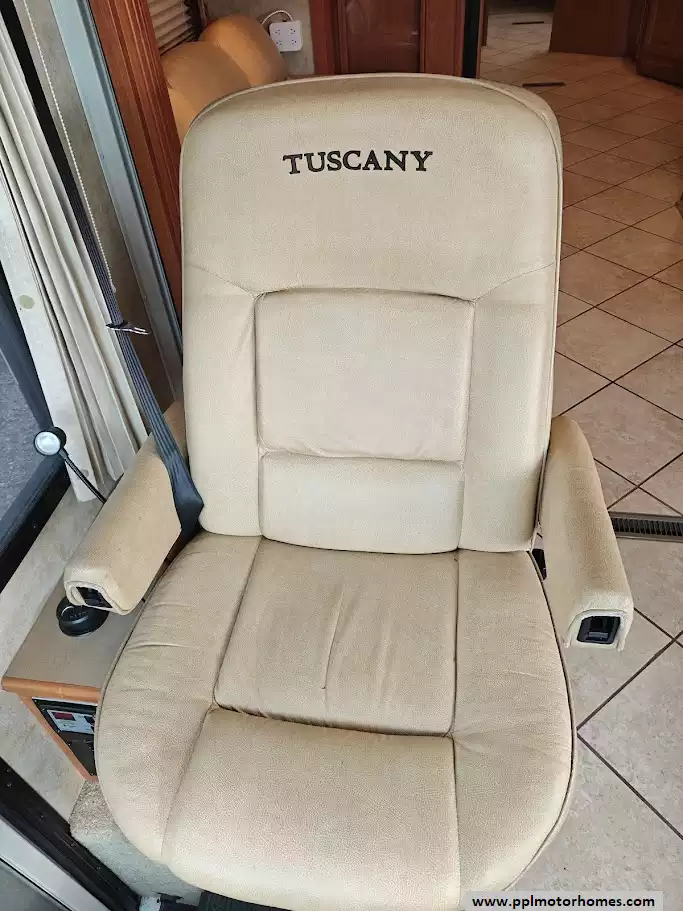 The 2009 Damon Tuscany 4056 features a full air-ride suspension system, which is standard for the Freightliner XC raised-rail chassis it is built upon. This system is a key component in providing the smooth, comfortable ride characteristic of high-end diesel pusher motorhomes. It is equipped with a automatic hydraulic leveling jack system.