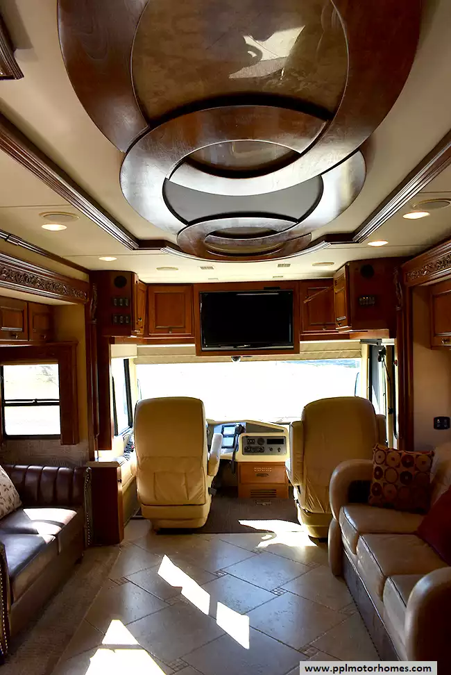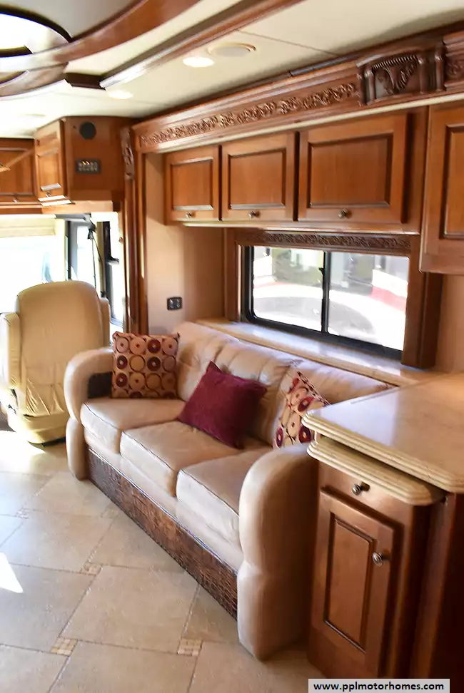 This 2009 Monaco Dynasty YORKSHIRE 4 has a 500hp 11.0l Cummins Engine On a Roadmaster Chassis, Air Ride Suspension, Exhaust Brake, 4 Slide-outs, Onan Diesel Generator, 3 Ducted Air Conditioners, Levelers, Double Door 12v Frigidaire Refrigerator, In-Fridge Ice Maker, Automatic Main Awning And Slide Awning, Washer/Dryer, Backup Camera, Solar Panel, Dishwasher, Outside Entertainment System, 2 TVs, DVD Player, Outside Shower, Convection Microwave, 3 Burner Range