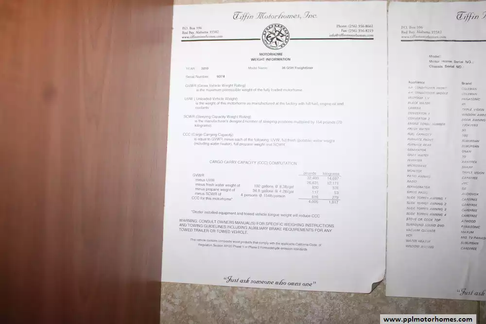The 2010 Tiffin Phaeton 36QSH is a luxury Class A diesel pusher motorhome known for its high-end construction, spacious quad-slide floorplan, and smooth driving performance. Measuring approximately 36 feet 9 inches in length with four slide-outs, it offers a roomy interior that includes a comfortable living area with a sofa bed and booth dinette, a fully equipped kitchen with a residential refrigerator, microwave, cooktop, and solid-surface countertops, plus ample cabinetry throughout. The rear bedroom features a queen bed slide, large wardrobe, and entertainment storage, while the split bathroom design includes a private toilet area and a large shower for added convenience. Built on a Freightliner raised-rail chassis and powered by a Cummins ISC 8.3L diesel engine producing about 360 horsepower paired with an Allison 6-speed automatic transmission, it delivers strong towing capability and smooth highway performance. With a GVWR of about 32,000 lbs, 10,000-lb towing capacity, 100-gallon fuel tank, and holding tanks of 90 gallons fresh, 70 gallons gray, and 50 gallons black, the Phaeton 36QSH is well suited for long-distance travel or extended stays while offering the comfort and quality that Tiffin motorhomes are known for. This Phaeton also has brand-new tires and the house batteres were replaced in March 2026. The seller has also added Koni shocks, motion control valves, "Safe-T-Plus" steering stablization, and exterior snap-on window shades.