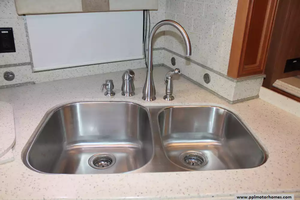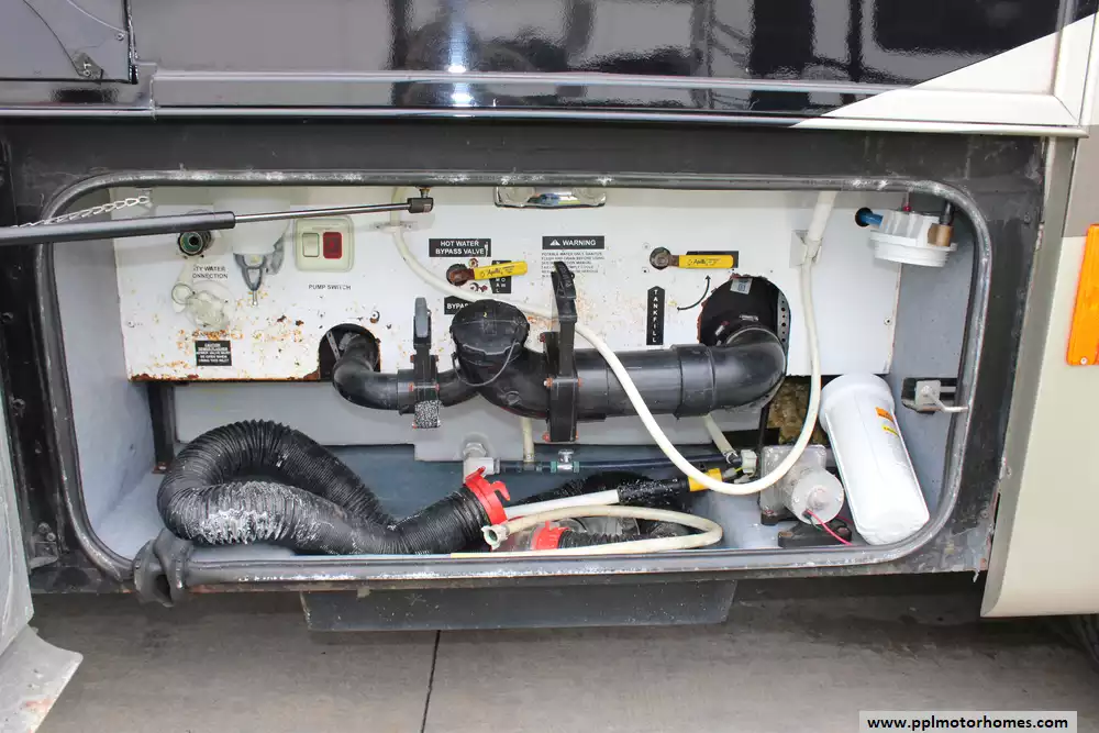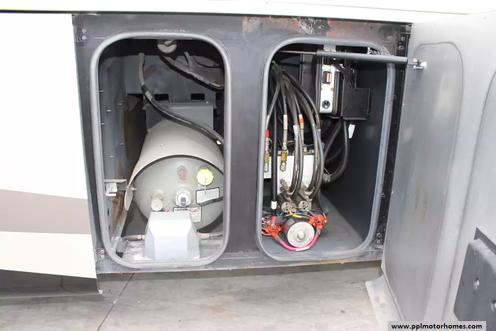 Specs: Length: 40.42 ft., Width: 8.42 ft., Height: 12.58 ft., Interior Height: 7 ft., Fuel Capacity: 100 gal., Total Fresh Water Tank Capacity: 90 gal., Total Gray Water Tank Capacity: 70 gal.,Total Black Water Tank Capacity: 50 gal., Total Number of Propane Tanks: 1, Total Propane Tank Capacity: 151 lbs.