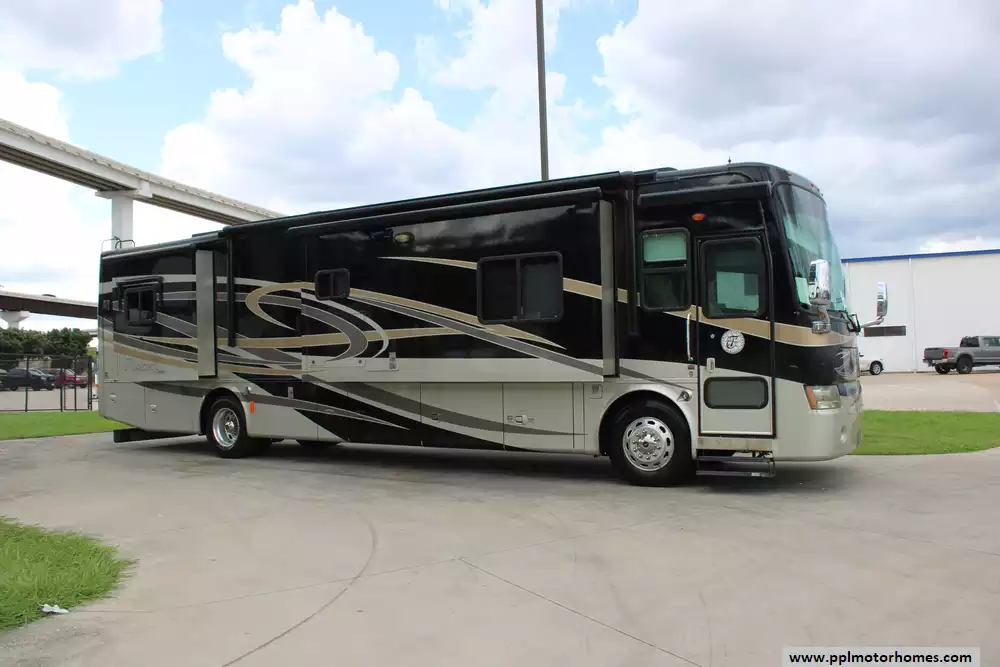 This 2010 Phaeton by Tiffin 40QTH is a luxury Class A diesel motorhome renowned for its build quality, spaciousness, and high-end amenities. Amenities Include...360hp Cummins Engine On a Freightliner Chassis, Exhaust Brake, 4 Slide-outs, Onan Diesel Generator, 3 Ducted Air Conditioners, Refrigerator, In-Fridge Ice Maker, Automatic Main Awning And Window/Slide/Door Awnings, Backup Camera, GPS System, Heated Tanks, Outside Entertainment System, DVD Player, Outside Shower, and Convection Microwave. Designed for full-time living or extended travel, it offers a combination of comfort and performance.