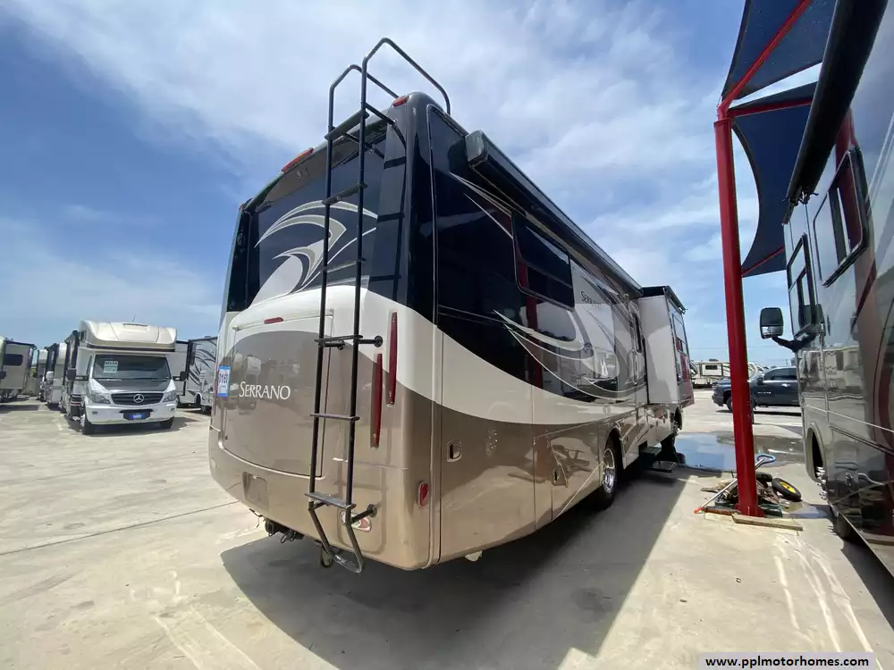 This 2011 Serrano 31V has a 6.4liter V8 Maxxforce Engine On a Workhorse Chassis, 2 Slide-outs, Onan Diesel Generator, 2 Ducted Air Conditioners, Levelers, Double Door Norcold Refrigerator, Automatic Main Awning And Slide Awning, Backup Camera, Satellite Dish, 2 TVs, Outside Shower, Convection Microwave, 2 Burner Range