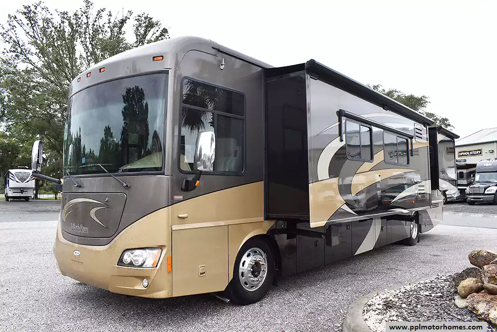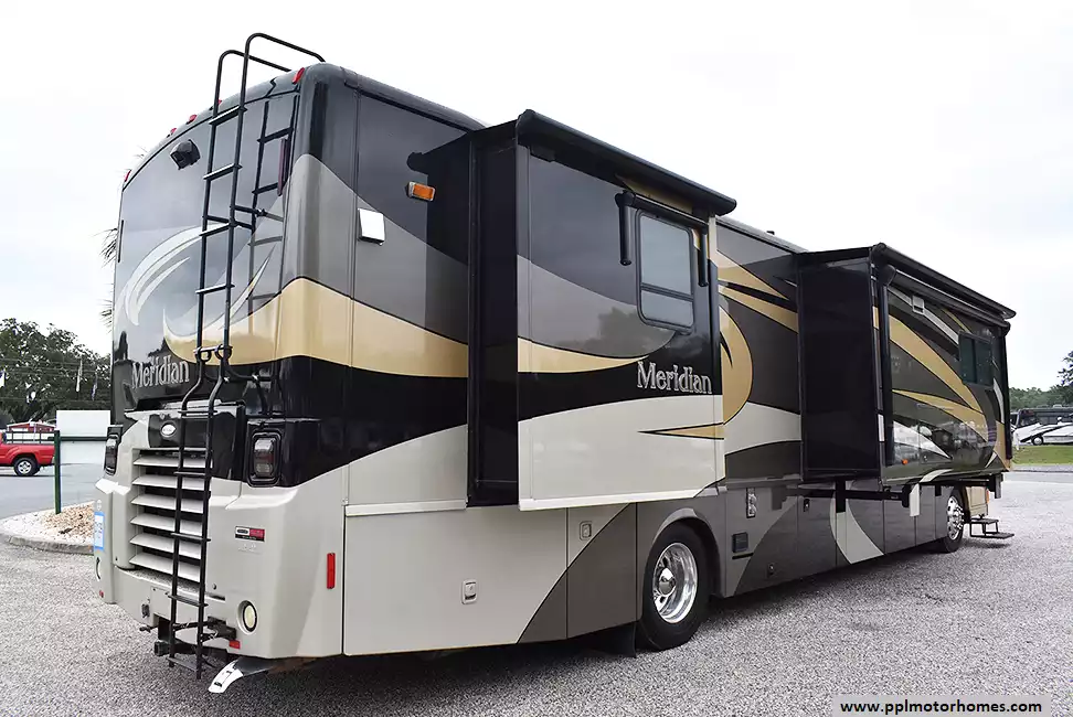 This 2011 Itasca Meridian 40U has a 380hp Cummins Engine On a Freightliner Chassis, Exhaust Brake, 4 Slide-outs, Onan Diesel Generator, 3 Ducted Air Conditioners, Levelers, 4 Door Gas/110v Norcold Refrigerator, In-Fridge Ice Maker, Automatic Main Awning And Window/Slide/Door Awnings, Washer/Dryer, Backup Camera, Satellite Dish, Outside Entertainment System, 3 TVs, DVD Player, Outside Shower, Fireplace, Convection Microwave, 3 Burner Range