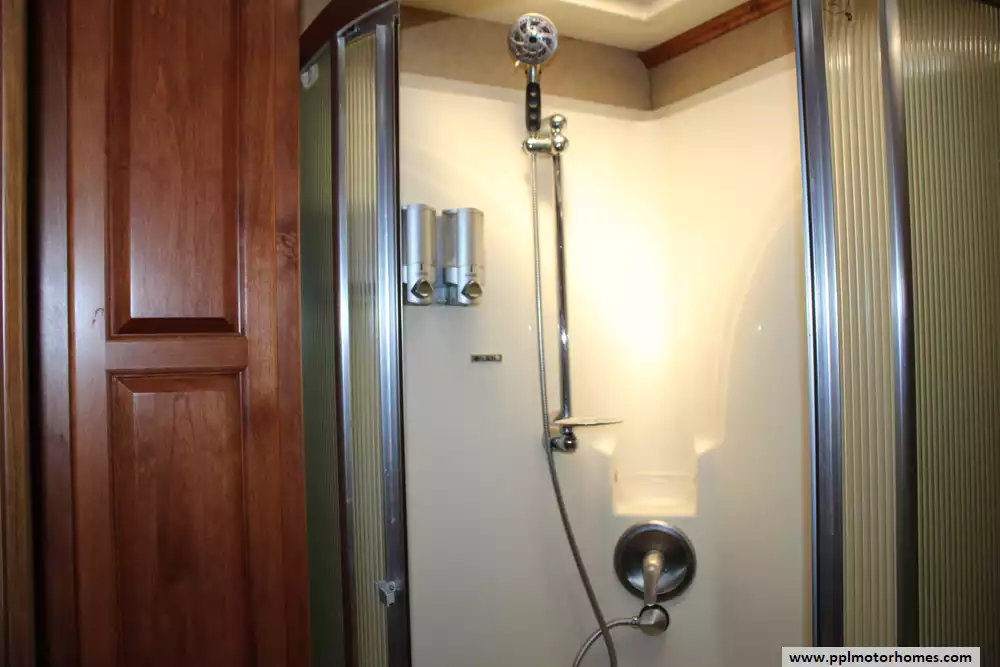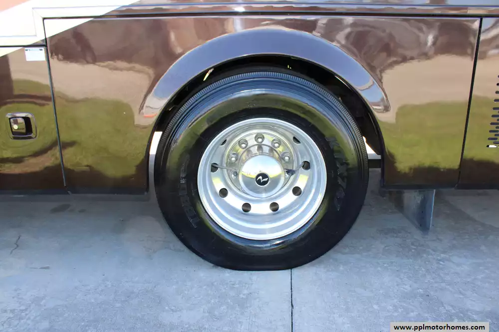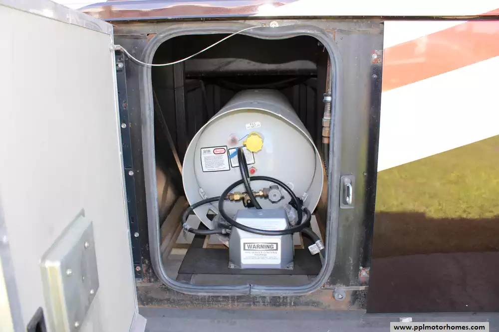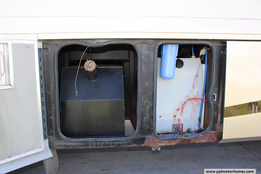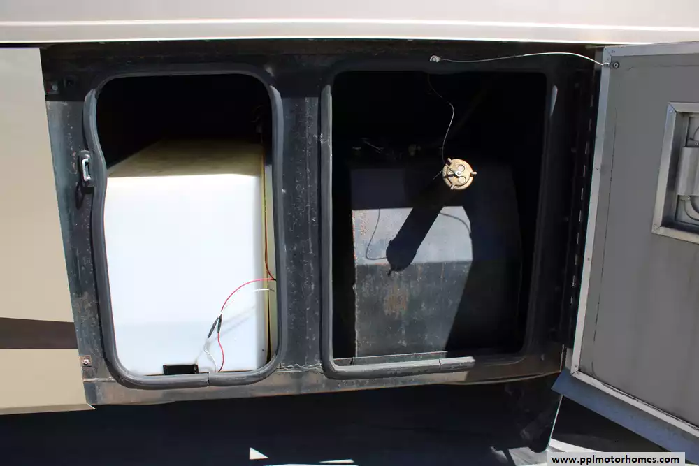 Specs: Length: 41.33 ft., Width: 8.38 ft., Height: 12.58 ft.,Interior Height: 7 ft., Fuel Capacity: 100 gal., Total Fresh Water Tank Capacity: 100 gal., Total Gray Water Tank Capacity: 62 gal., Total Black Water Tank Capacity: 40 gal., Number of Propane Tanks: 1.,Total Propane Tank Capacity: 165 lbs.
