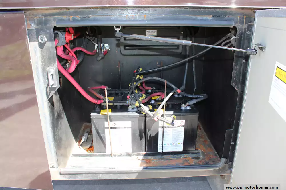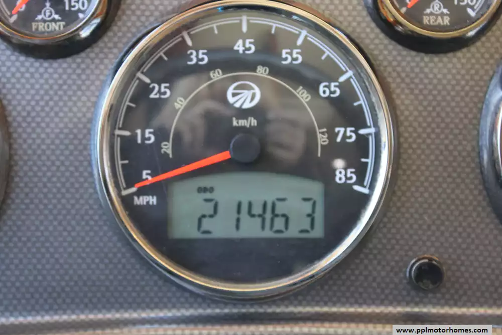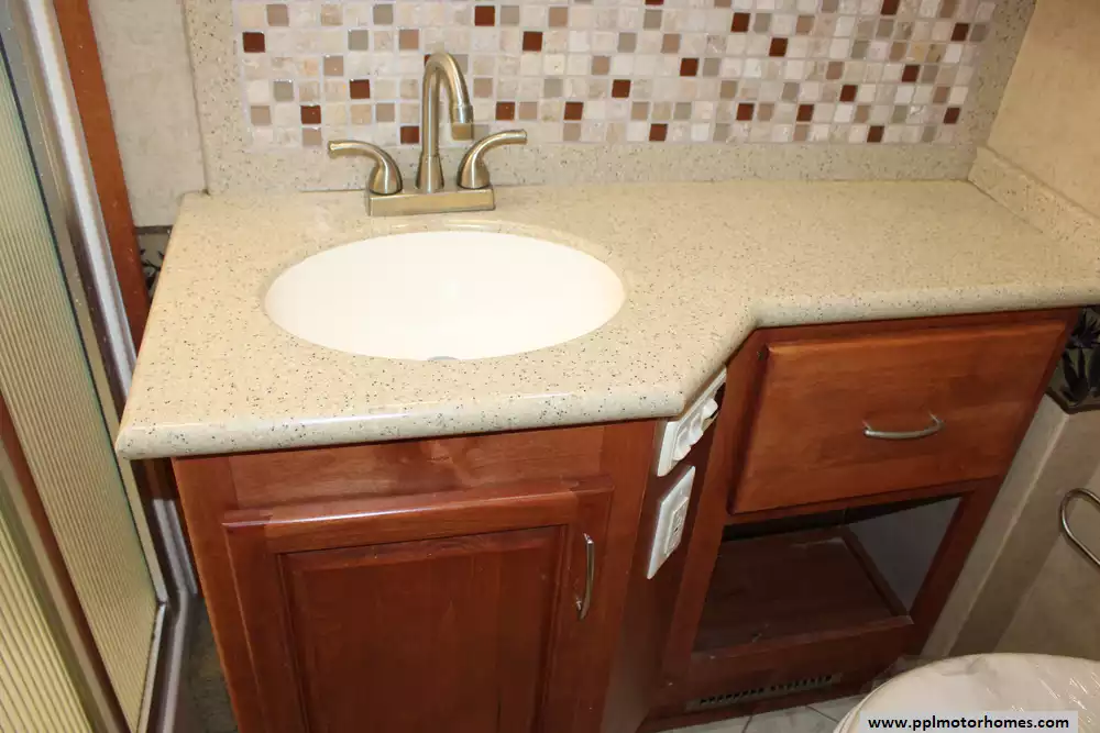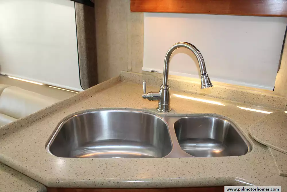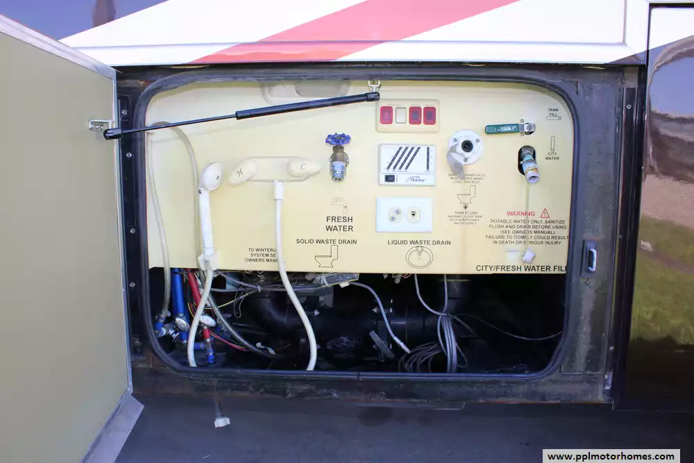 Specs: Length: 41.33 ft., Width: 8.38 ft., Height: 12.58 ft.,Interior Height: 7 ft., Fuel Capacity: 100 gal., Total Fresh Water Tank Capacity: 100 gal., Total Gray Water Tank Capacity: 62 gal., Total Black Water Tank Capacity: 40 gal., Number of Propane Tanks: 1.,Total Propane Tank Capacity: 165 lbs.