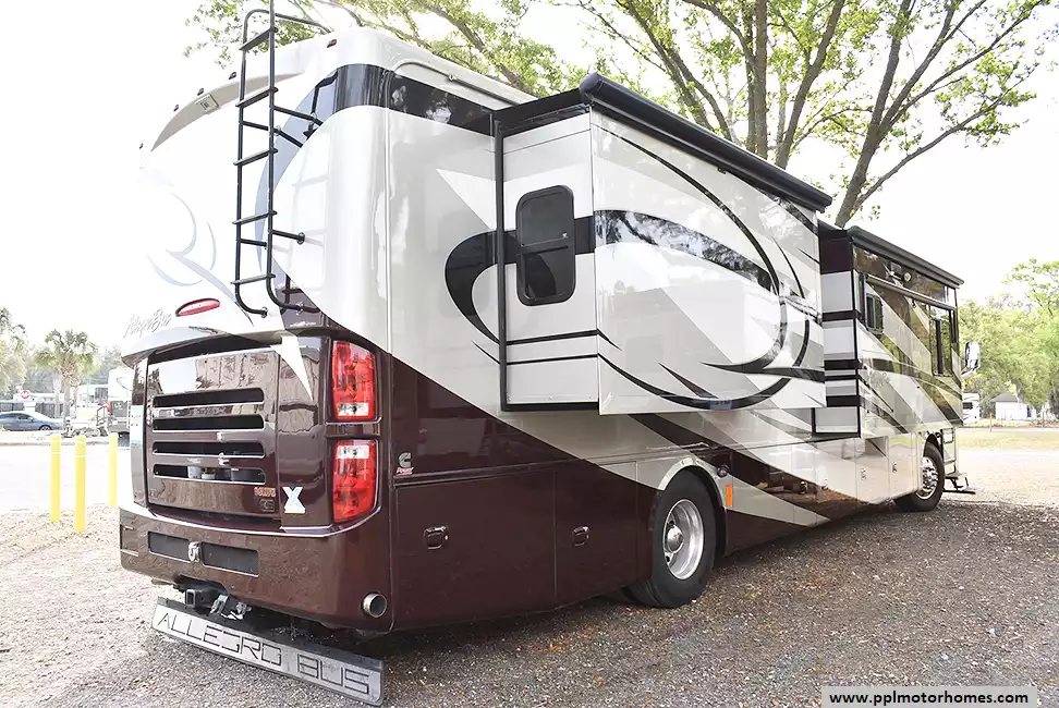 This 2011 Allegro Bus by Tiffin 40QXP has a 450hp 450hp Cummins Engine On a Powerglide Chassis, Air Bag Suspension, Exhaust Brake, 4 Slide-outs, Onan Diesel Generator, 3 Ducted Air Conditioners, Levelers, Residential Ge Refrigerator, In-Fridge Ice Maker, Automatic Main Awning And Window/Slide/Door Awnings, Washer/Dryer, Backup Camera, Solar Panel, Dishwasher, Satellite Receiver, Outside Entertainment System, 4 TVs, DVD Player, Outside Shower, Fireplace, Central Vacuum, Convection Microwave, 3 Burner Range