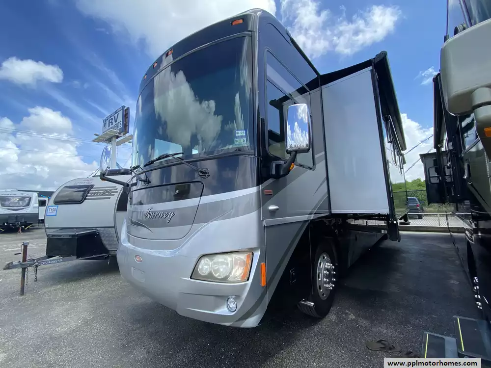 This 2011 Journey Express 40U has a 380hp 8.3l I-6 Cummins Engine On a Freightliner Chassis, Air Bag Suspension, Exhaust Brake, 4 Slide-outs, Onan Diesel Generator, 3 Ducted Air Conditioners, Levelers, Double Door Residential Maytag Refrigerator, In-Fridge Ice Maker, Automatic Main Awning And Window/Slide/Door Awnings, Washer/Dryer, Backup Camera, Solar Panel, Satellite Dish, Outside Entertainment System, 2 TVs, DVD Player, Outside Shower, Convection Microwave, 3 Burner Range