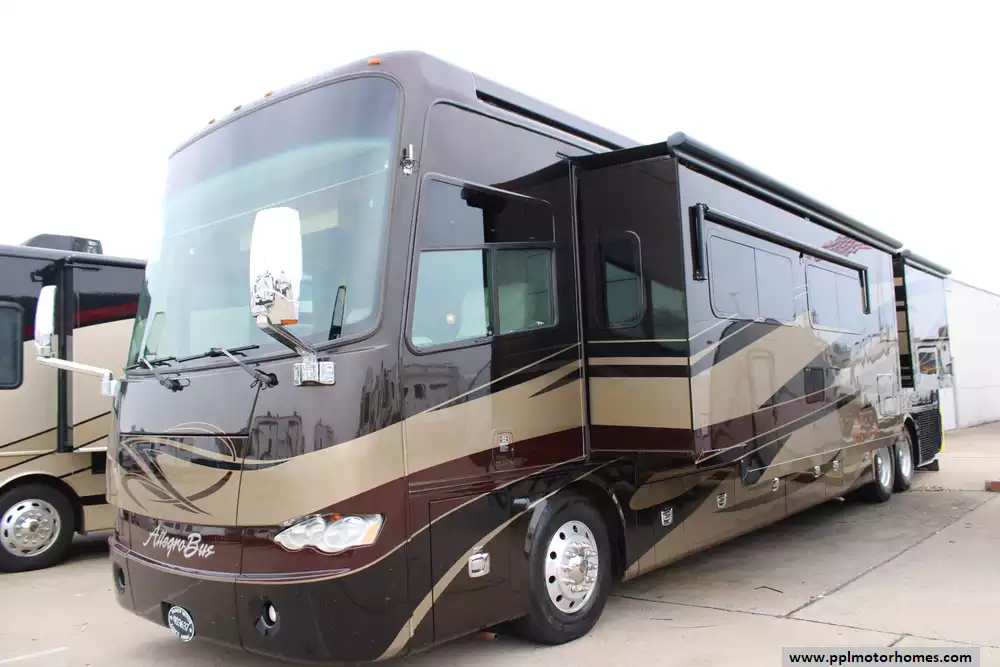 This Aggressively-Priced 2012 Tiffin Allegro Bus 43QGP Offers A Spacious Floorplan That Makes Traveling And Seeking Adventure Easy To Come By! Some Notable Highlights Of This Allegro Bus Include... A 450HP 8.9L Cummins Engine On A Powerglide Chassis, Air Ride Suspension, Full Body Paint, Exhaust Brake, 4 Slide-Outs With Slide Toppers, Tinted Windows, Diamond Shield, Full-Width Branded Rock/Mud Guard, Onan 10,000-Watt Diesel Generator, 3 Ducted Air Conditioners, Automatic Levelers, 110v Residential Refrigerator, In-Fridge Ice Maker, Dual Power Awnings And Window/Door Awnings, Stacked Washer/Dryer, Backup Camera, Side Cameras, Navigation System, Solar Panel, Heated Tanks, Surge Guard, Winegard Roadtrip In-Motion Satellite, Winegard Rayzar HDTV Antenna, 4 TVs (Including An Outside Entertainment System), DVD Player, Satellite Radio Prep, Outside Shower, Dometic Basement Freezer, Sliding Pull-Out Basement Storage Trays, Dirt Devil Central Vacuum System, Closet Safe, Ceiling Fan, Soft-Touch Vinyl Ceiling, Convection Microwave, 2 Burner Range, Bath And A Half, King Bed, And Much More!