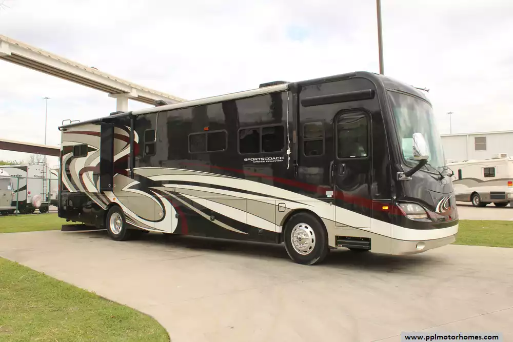 This 2013 Sportscoach Cross Country 385DS offers unparalleled comfort,performance, and style for discerning travelers.With its impressive size,powerful engine, and upscale amenities,it provides a truly unforgettable RVing experience.Features Include... 2 Slide-outs, Onan Diesel Generator, 2 Ducted Air Conditioners, Levelers, Double Door Gas/110v Dometic Refrigerator, Automatic Main Awning And Slide/Door Awnings, Washer/Dryer Connections, Backup Camera, TV, Outside Shower, Convection Microwave,and 3 Burner. Range.With its upscale amenities, powerful engine, and elegant design, it provided a truly unforgettable home on wheels for adventurers of all kinds.