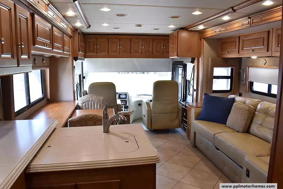(Floor plan is NOT drawn to scale. Length of vehicle is approximate. Buyer is responsible for verifying actual length. PPL Motor Homes compiled this list of features, specifications, equipment and options as a guide. No representation or warranties, either express or implied, are made as to the accuracy of the information herein. Please verify for yourself all items listed before purchase.)
