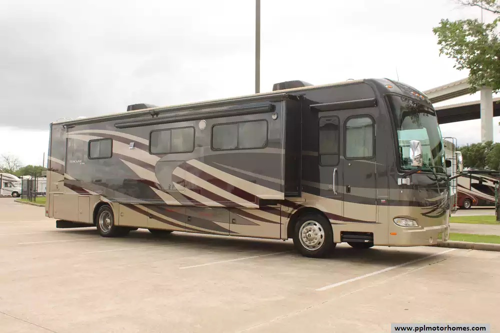 This 2013 Tuscany 4OEX is a luxurious diesel pusher that redefines elegance and comfort in the RV industry.Features Include...360hp Cummins Engine On a Freightliner Chassis,Air Bag Suspension,Exhaust Brake,3 Slide-outs, Onan Diesel Generator, 2 Ducted Air Conditioners, Levelers, Double Door Residential Whirlpool Refrigerator, In-Fridge Ice Maker, Automatic Main Awning And Slide Awning, Washer/Dryer, Backup Camera, Heated Tanks, Outside Entertainment System, 3 TVs, Satellite Radio, Outside Shower, Fireplace, Central Vacuum, Convection Microwave,and 3 Burner Range.It's a pinnacle of luxury and craftsmanship in the Class A diesel motorhome segment.Its combination of style, comfort,and performance makes it a popular choice among RV enthusiasts seeking the ultimate travel experience.