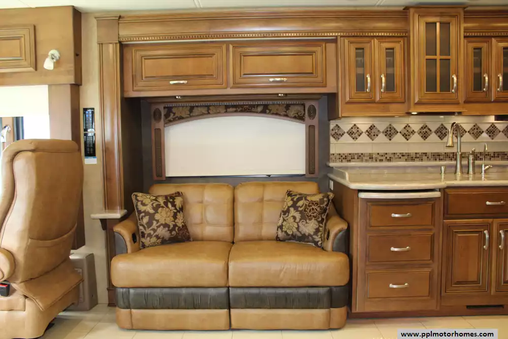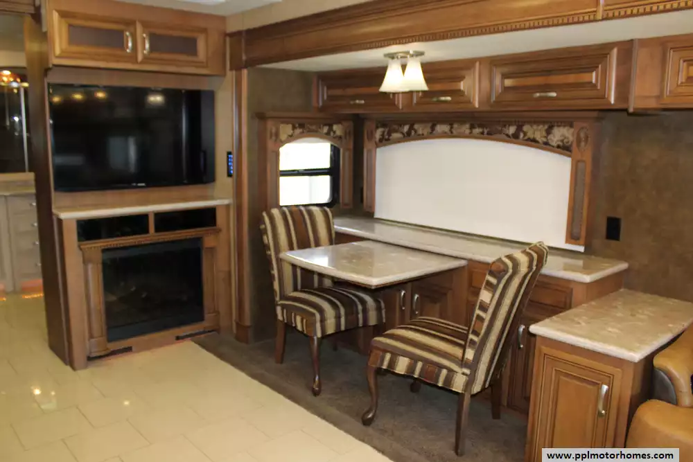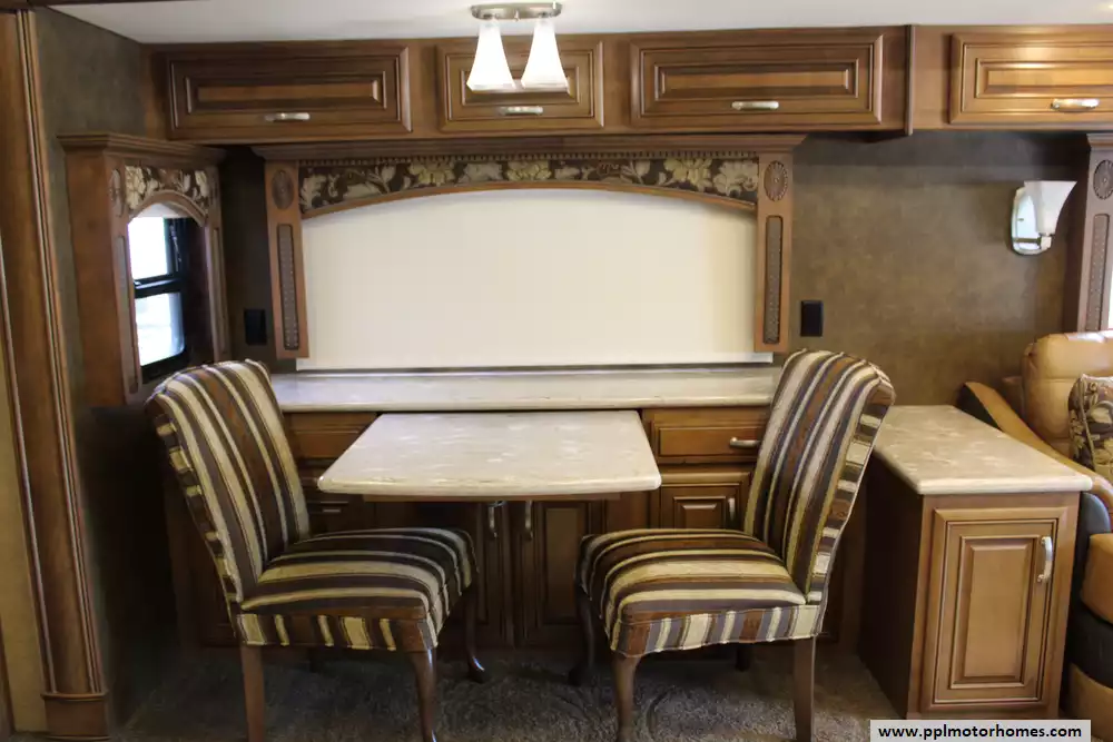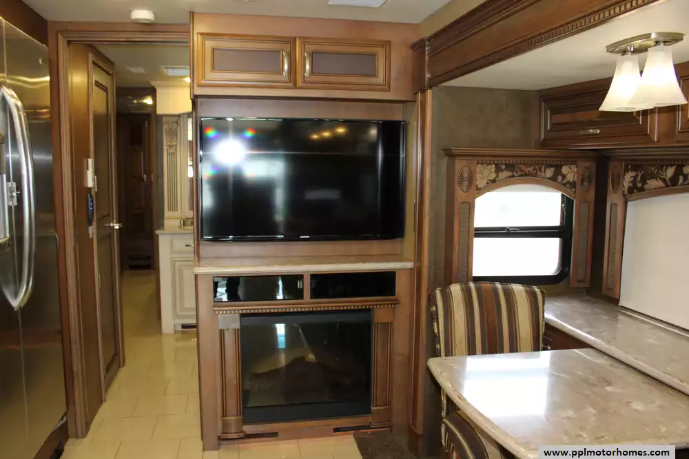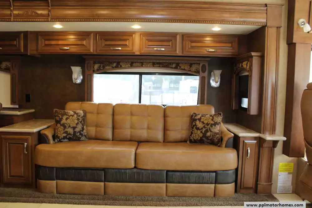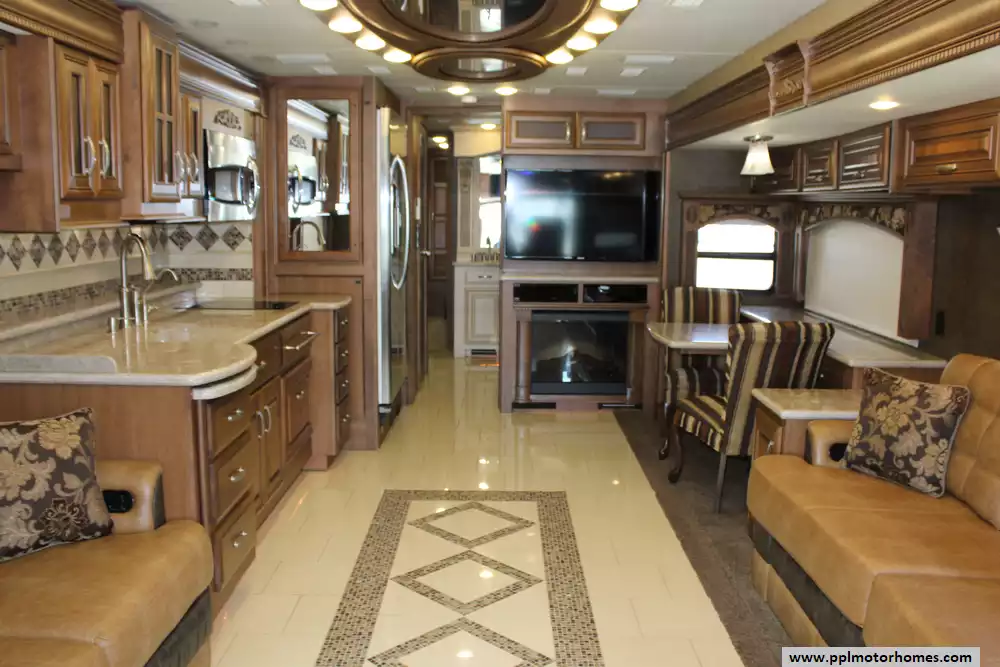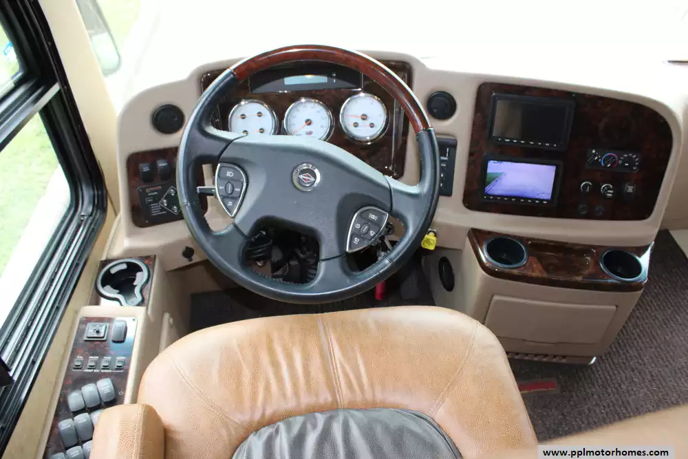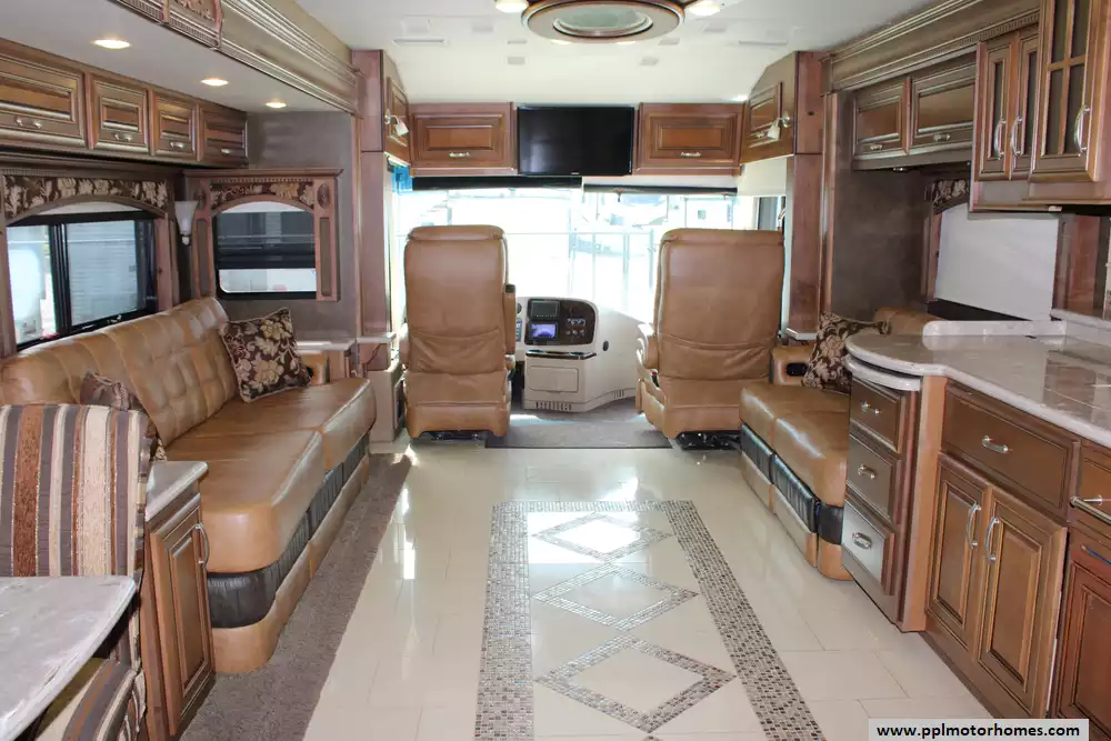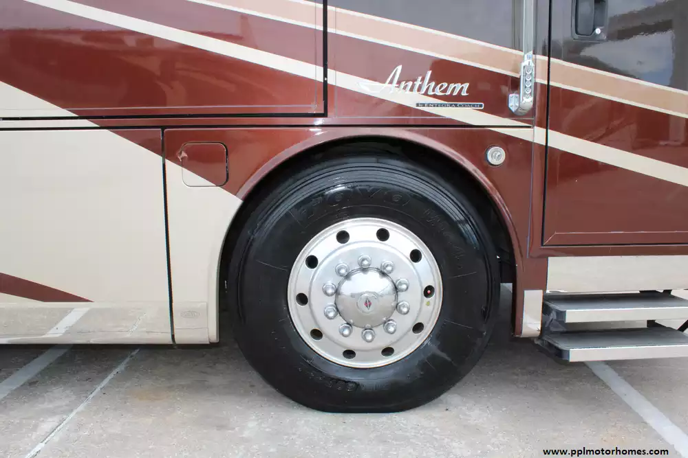 This 2014 Anthem 44DLQ is a luxury Class A diesel pusher motorhome renowned for its high-end amenities, robust construction, and smooth ride. Amenities Include...450hp Cummins Engine On a Spartan Chassis, Exhaust Brake, 4 Slide-outs, 3 Ducted Air Conditioners, Refrigerator, Automatic Main Awning And Window/Slide/Door Awnings, Backup Camera, Dishwasher, DVD Player, Fireplace, and Central Vacuum. It offers a spacious and comfortable layout suitable for long-term stays.
