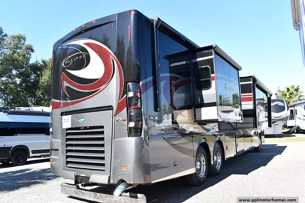 This 2014 Ellipse 42QD has a 450hp 8.9 N/A Engine, Air Bag Suspension, 3 Slide-outs, Onan Diesel Generator, 3 Ducted Air Conditioners, Levelers, Residential Whirlpool Refrigerator (Additional Refrigerator Present), In-Fridge Ice Maker, Automatic Main Awning And Window/Slide/Door Awnings, Washer/Dryer, Backup Camera, Solar Panel, Dishwasher, Heated Tanks, In-Motion Satellite System, 2 TVs, DVD Player, Outdoor Kitchen, Outside Shower, Fireplace, Central Vacuum, Convection Microwave, 2 Burner Range