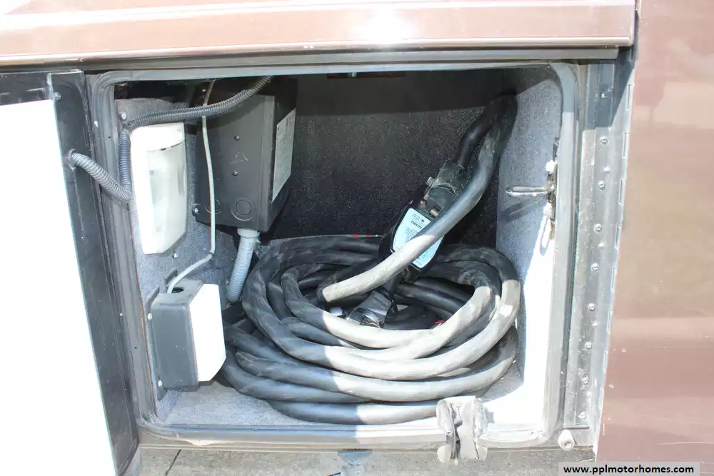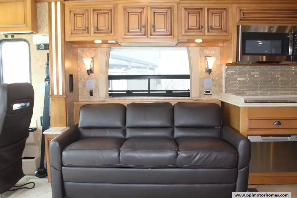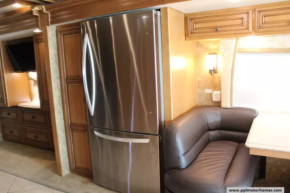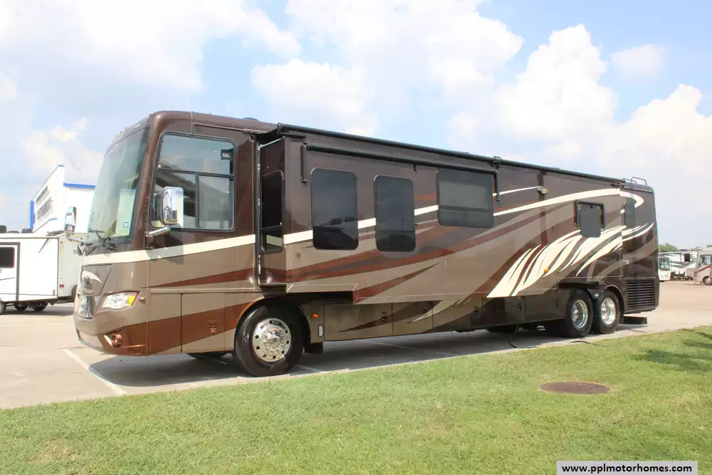 Specs: Length: 43.75 ft., Width: 8.46 ft., Height: 12.83 ft., Interior Height: 7 ft., Payload Capacity: 9,000 lbs., Fuel Capacity: 150 gal., Total Fresh Water Tank Capacity: 105 gal., Total Gray Water Tank Capacity: 65 gal., Total Black Water Tank Capacity: 45 gal., Total Number of Propane Tanks: 1, Total Propane Tank Capacity: 136 lbs.