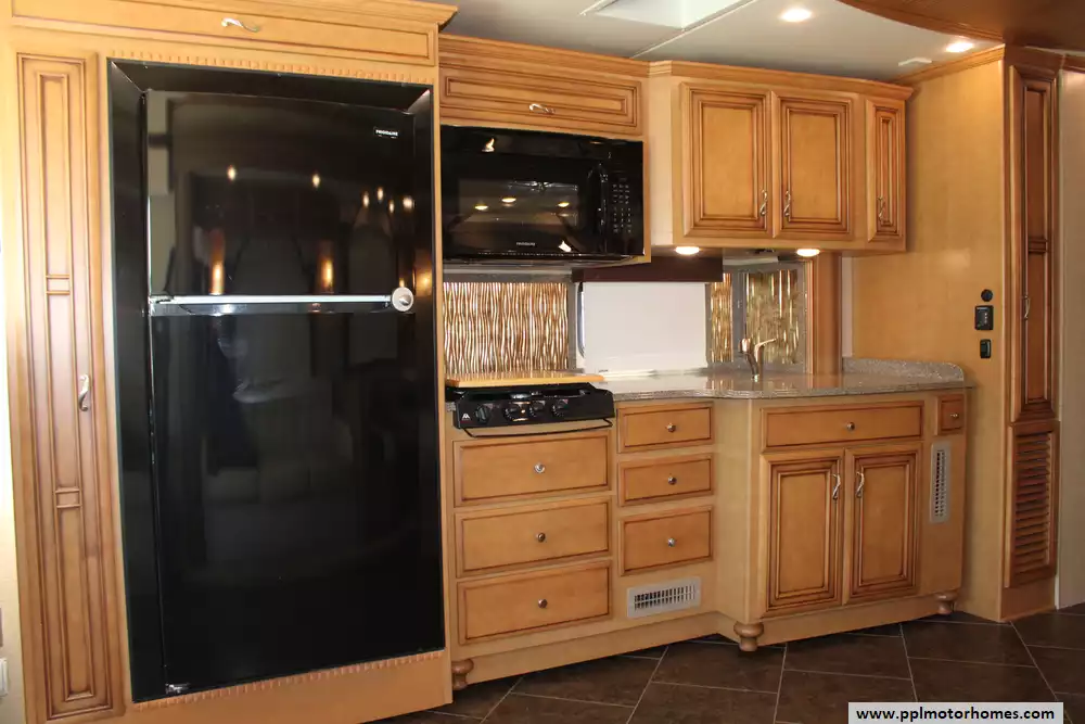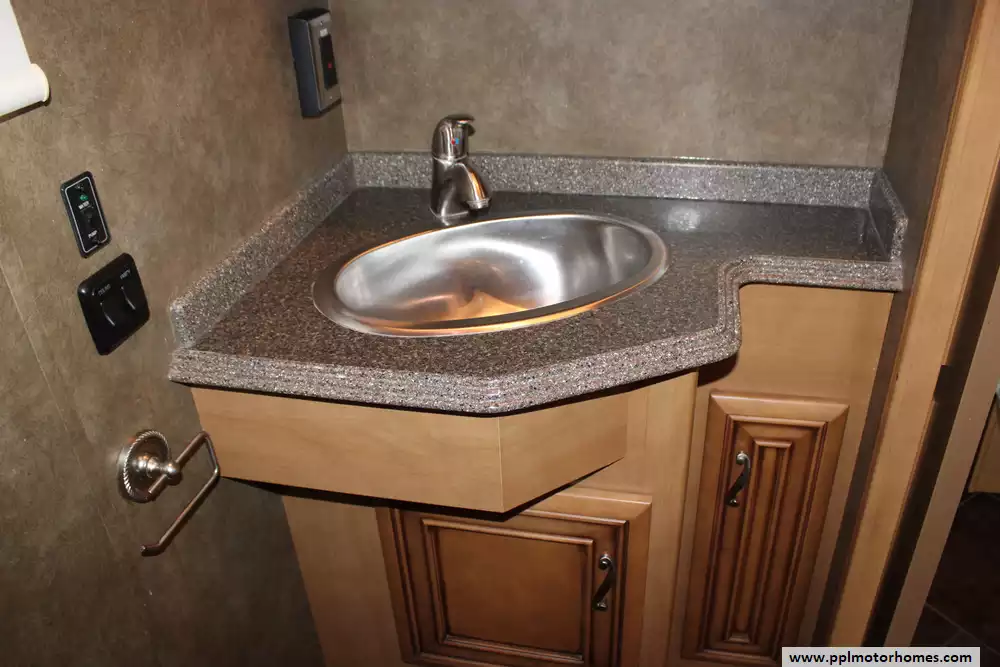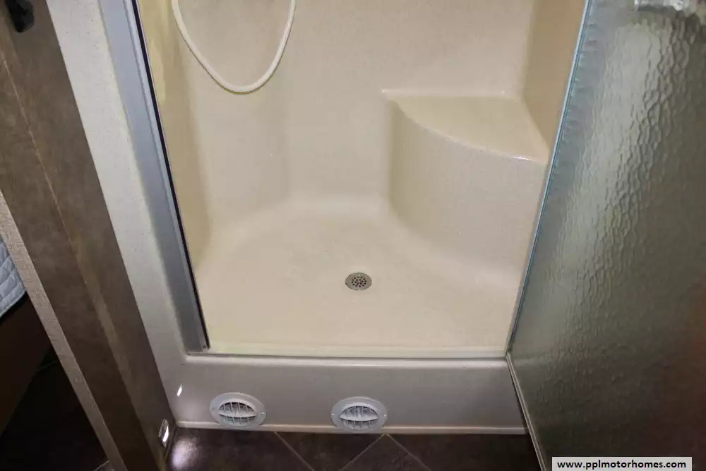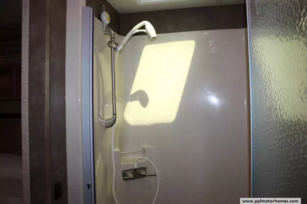 Specs: Length: 34.83 ft., Width: 8.46 ft., Height: 12.42 ft., Interior Height: 7 ft., Fuel Capacity: 100 gal., Payload Capacity: 8,100 lbs., Total Fresh Water Tank Capacity: 105 gal., Total Gray Water Tank Capacity: 65 gal., Total Black Water Tank Capacity: 45 gal., Total Number of Propane Tanks: 1, Total Propane Tank Capacity: 136 lbs.