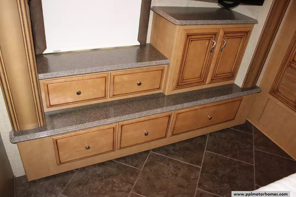 (Floor plan is NOT drawn to scale. Length of vehicle is approximate. Buyer is responsible for verifying actual length. PPL Motor Homes compiled this list of features, specifications, equipment and options as a guide. No representation or warranties, either express or implied, are made as to the accuracy of the information herein. Please verify for yourself all items listed before purchase.)