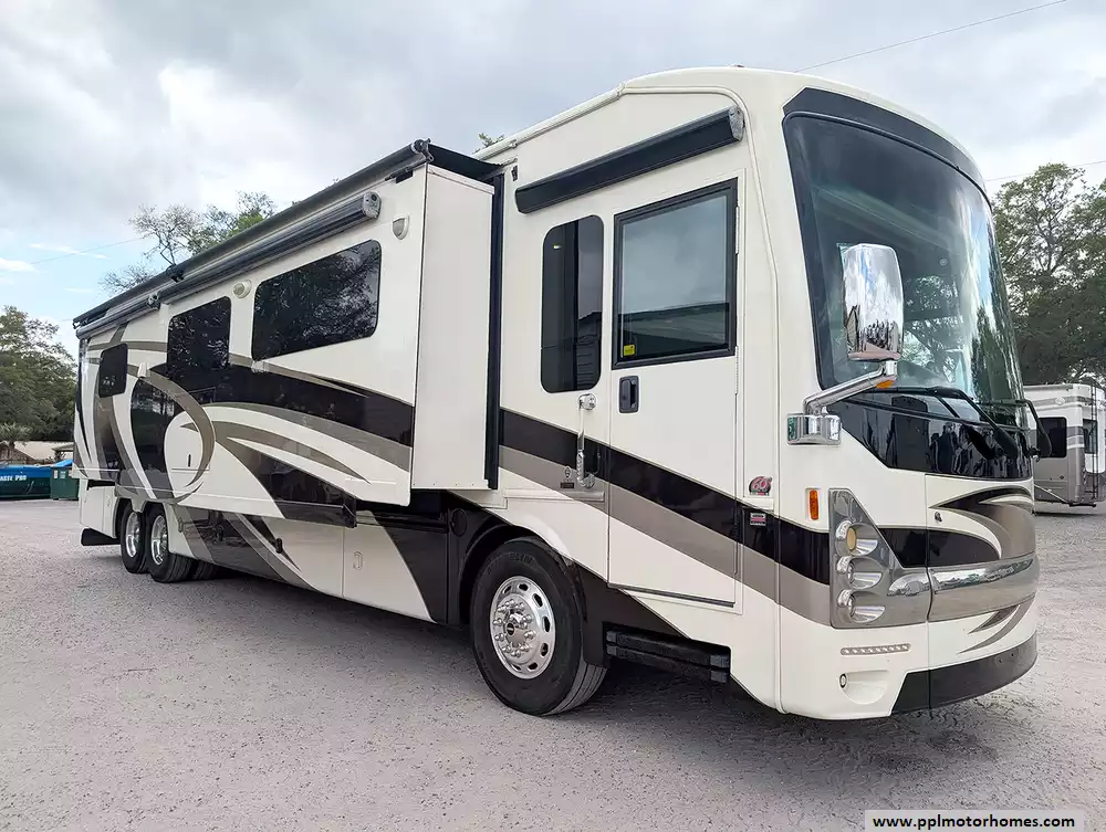 Experience the pinnacle of luxury travel with this 2014 Tuscany 42WX, the flagship diesel pusher from Thor Motor Coach. Renowned for its residential-grade elegance and superior handling on the open road, this 42-foot motorhome is built on a heavy-duty Freightliner chassis and powered by a formidable 450hp 8.9l Cummins engine. Every mile is a pleasure thanks to the air bag suspension and exhaust brake, while the high-quality fiberglass body and roof provide the durability and insulation needed for serious travelers. With three spacious slide-outs, an Onan diesel generator, and three ducted air conditioners, this coach is meticulously engineered to offer a smooth, quiet, and reliable foundation for your next cross-country adventure.