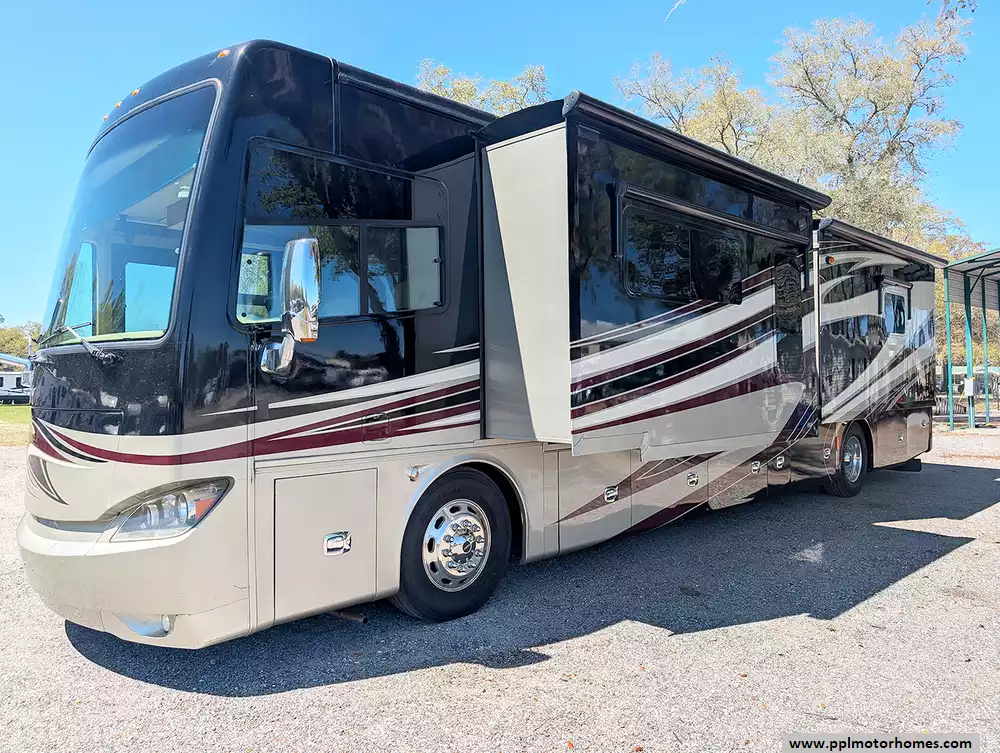 Experience why the Phaeton has long been celebrated as Tiffin's all-time bestseller with this exceptional 2014 40AH diesel motorhome. Built on a rugged Freightliner chassis and powered by a robust 380hp 8.9l Cummins engine, this coach delivers the smooth, confident ride that has made the Phaeton a legend among RV enthusiasts. With air ride suspension, an exhaust brake, and an integrated GPS and backup camera system, navigating the open road becomes a stress-free pleasure. The 40AH floor plan is highly regarded for its spacious, open-concept layout, further enhanced by four generous slide-outs and Tiffin's signature high-quality fit and finish, all protected by a durable fiberglass body and roof. Safe-T-Plus Steering Control