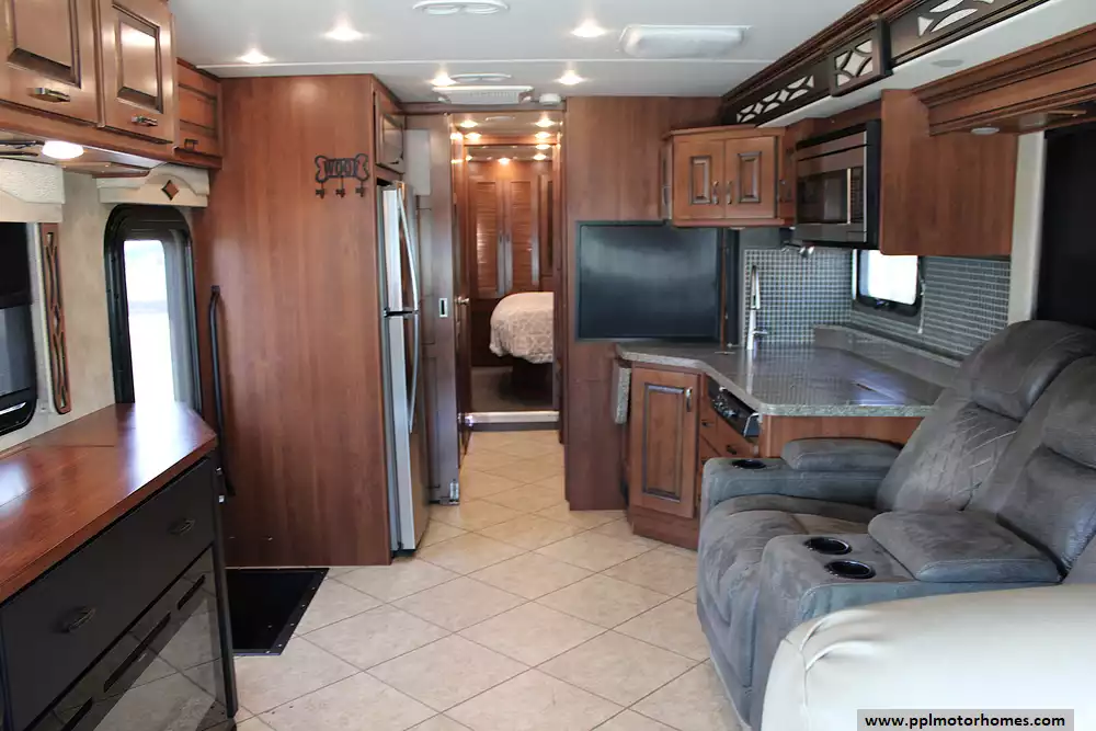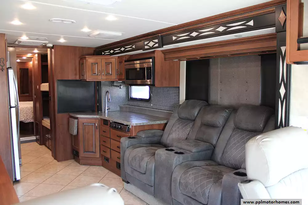 (Floor plan is NOT drawn to scale. Length of vehicle is approximate. Buyer is responsible for verifying actual length. PPL Motor Homes compiled this list of features, specifications, equipment and options as a guide. No representation or warranties, either express or implied, are made as to the accuracy of the information herein. Please verify for yourself all items listed before purchase.)