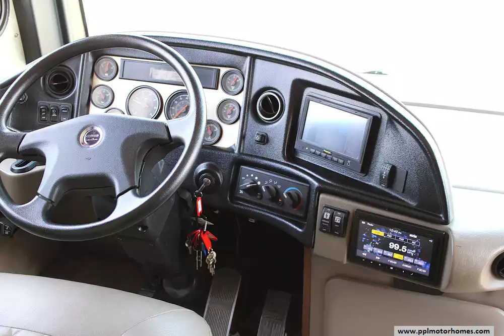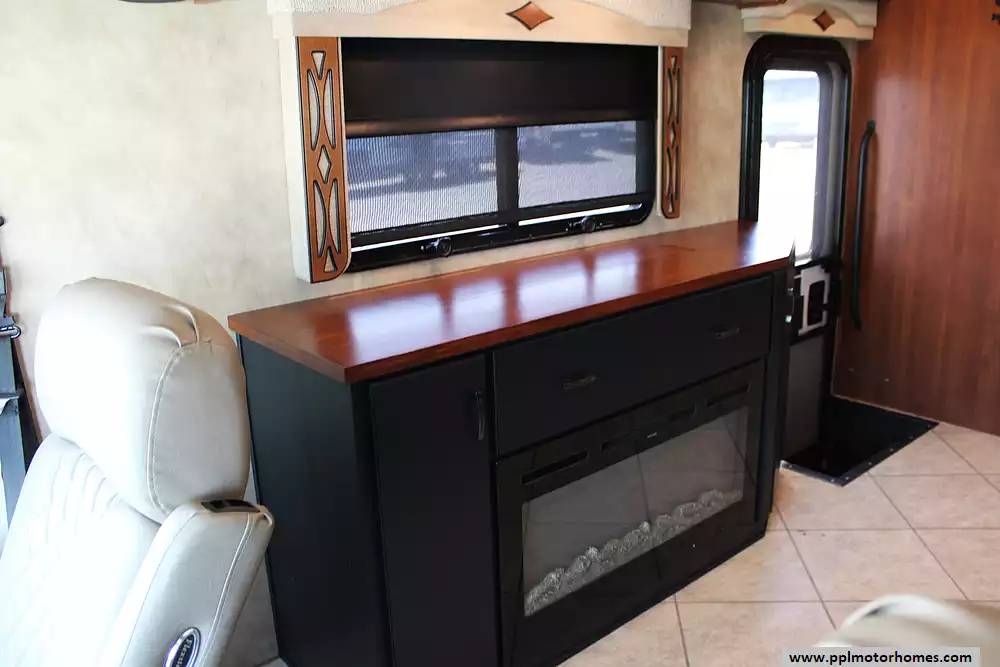 This coach is loaded with premium upgrades! A brand-new 18,000 BTU AC keeps the interior cool even in the hottest climates. New shocks and upgraded sway bars provide superior ride quality and handling, making long drives a breeze. Step inside and you'll find a beautifully refreshed interior featuring reupholstered seating that looks showroom new, new recliners, and a custom-built fireplace entertainment wall that adds a cozy, high-end residential touch. With great service records and meticulous care, this Excursion is turn-key and ready for its next adventure.