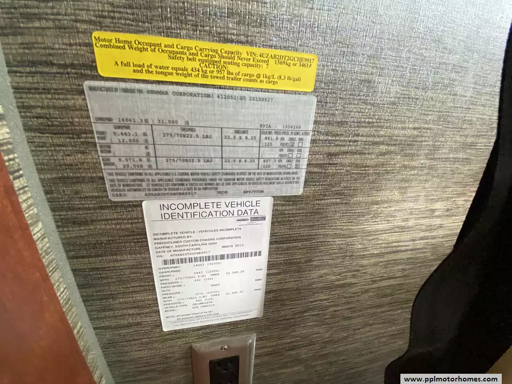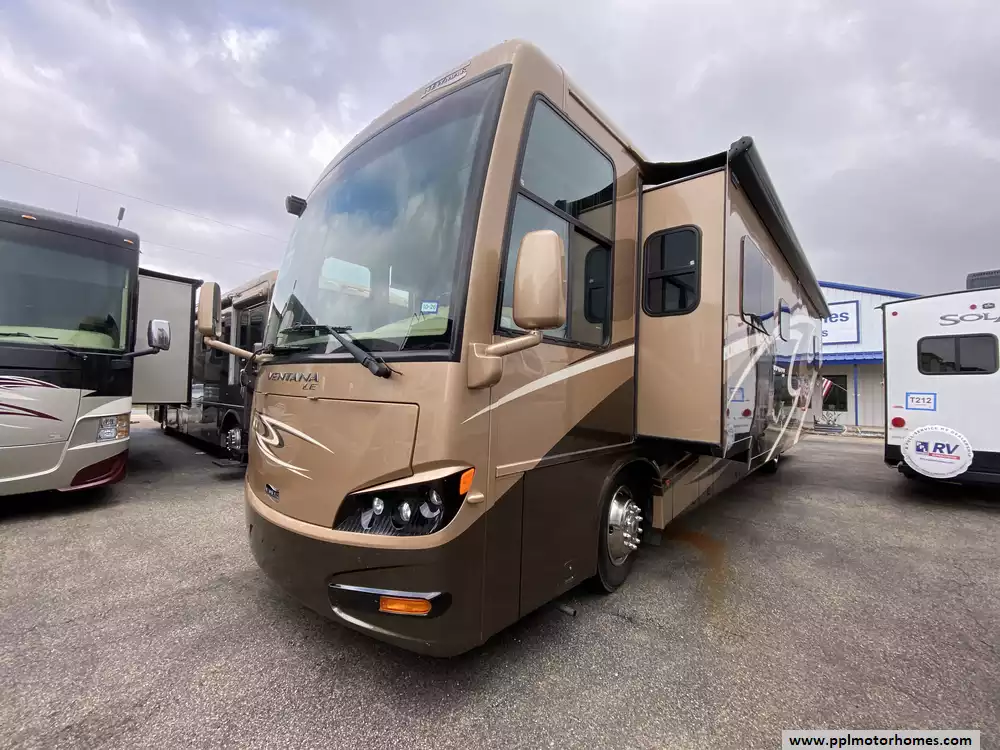 This 2015 Ventana Le 3812 has a 340hp Isb Cummins Engine On a Freightliner Chassis, Air Ride Suspension, Exhaust Brake, 3 Slide-outs, Onan Diesel Generator, 2 Ducted Air Conditioners, Levelers, Double Door Residential Maytag Refrigerator, In-Fridge Ice Maker, Automatic Main Awning And Window/Slide Awnings, Washer/Dryer, Backup Camera and Side Cameras, Satellite Receiver, 3 TVs, 3 DVD Players, Outside Shower, Convection Microwave, 3 Burner Range