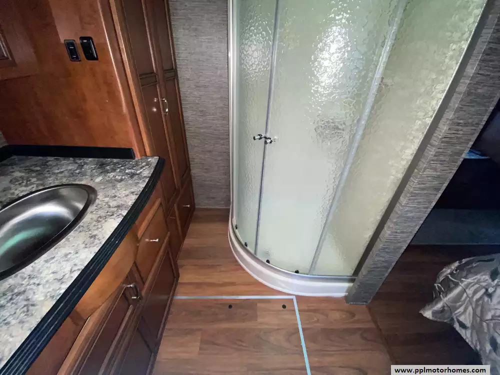 (Floor plan is NOT drawn to scale. Length of vehicle is approximate. Buyer is responsible for verifying actual length. PPL Motor Homes compiled this list of features, specifications, equipment and options as a guide. No representation or warranties, either express or implied, are made as to the accuracy of the information herein. Please verify for yourself all items listed before purchase.)