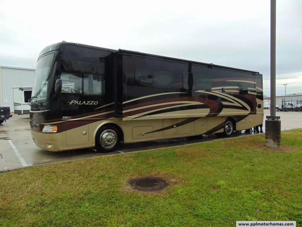 This 2015 Palazzo 36.1 is a luxurious diesel pusher motorhome designed for comfort, functionality,and extended travel.Features Include...Air Bag Suspension,Exhaust Brake,2 Slide-outs, Onan Diesel Generator, 2 Ducted Air Conditioners, Levelers, Double Door Residential Whirlpool Refrigerator, In-Fridge Ice Maker, Automatic Main Awning And Slide Awning, Washer/Dryer, Backup Camera, Outside Entertainment System, 3 TVs, Satellite Radio,Outside Shower,Convection Microwave,and 3 Burner Range. Combining upscale features,a smooth ride,and a user-friendly design,it offers a luxurious and reliable option for those seeking adventure without sacrificing the comforts of home.