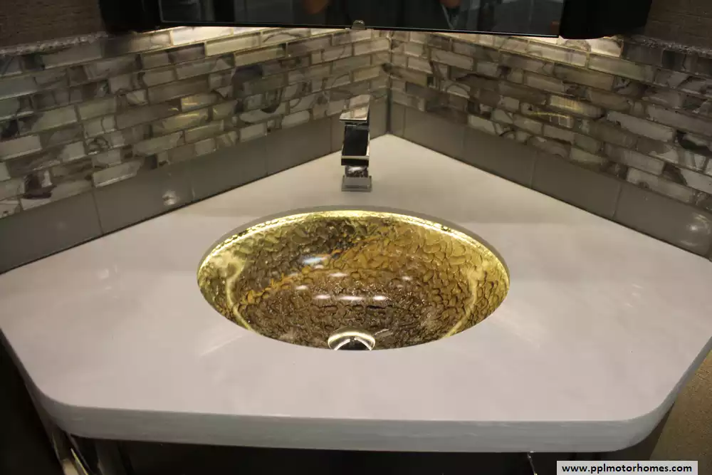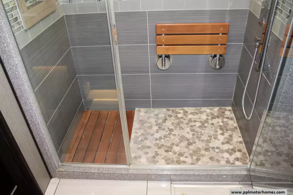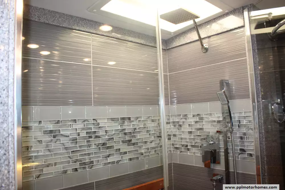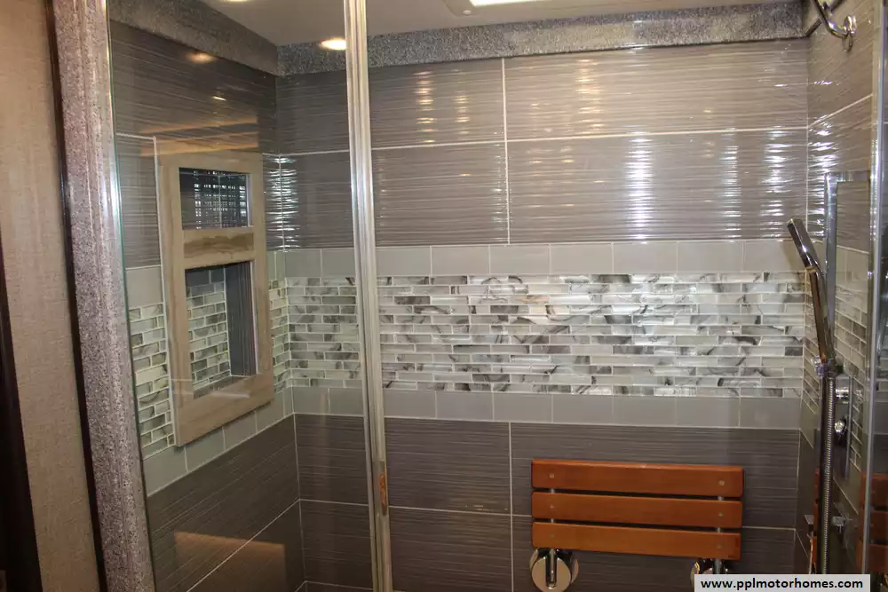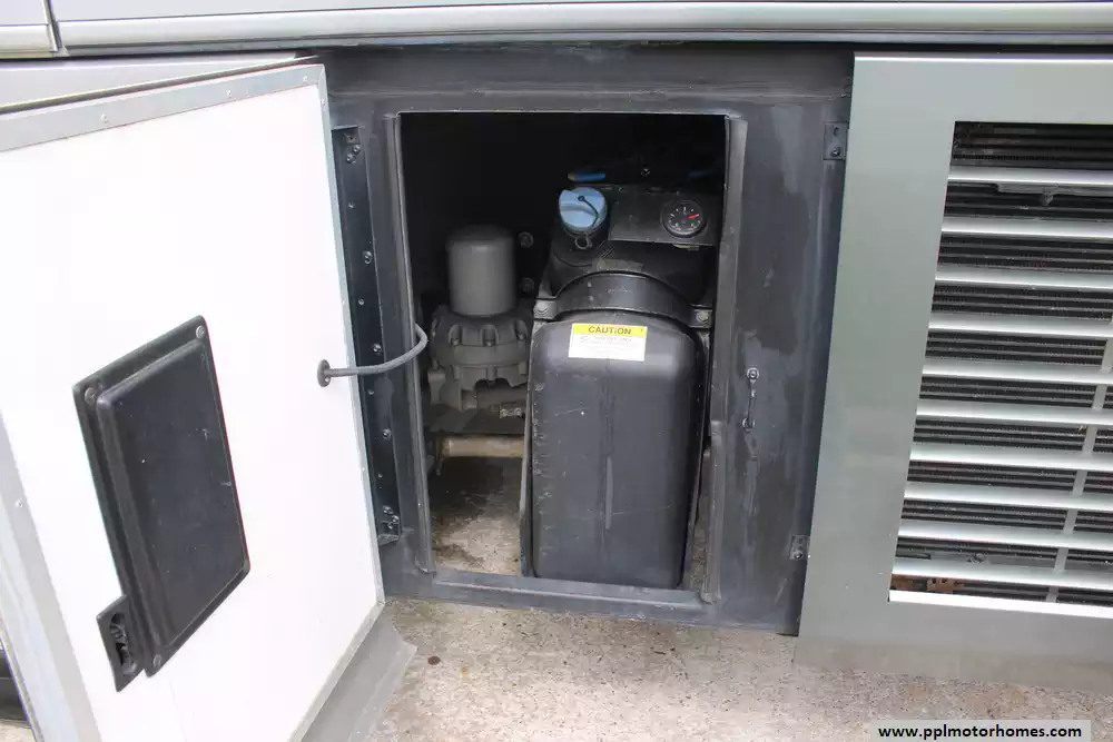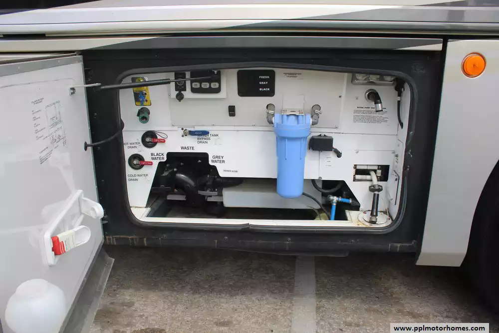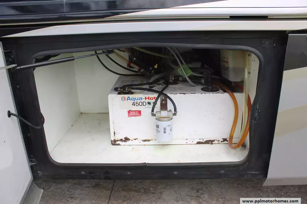 Specs: Length: 44.11 ft., Height: 12.11 ft., Width: 8.5 ft., Interior Height: 7 ft., Interior Width: 8 ft., Fuel Capacity: 150 gal., Total Fresh Water Tank Capacity: 100 gal., Total Gray Water Tank Capacity: 60 gal., Total Black Water Tank Capacity: 40 gal.