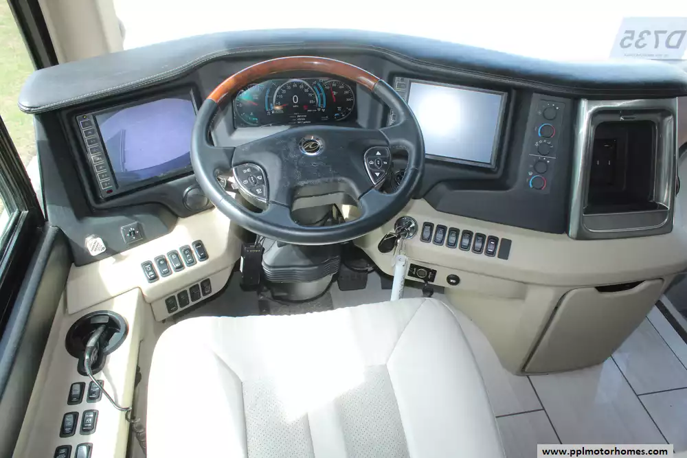 This 2016 American Eagle by American Coach 45A is designed for full-time RV living or luxury touring. Features Include...600hp Cummins Engine On a Freightliner Chassis, Air Bag Suspension, Exhaust Brake, 3 Slide-outs, Kohler Diesel Generator, 3 Ducted Air Conditioners, Levelers, Residential Whirlpool Refrigerator, In-Fridge Ice Maker, Automatic Main Awning And Window/Slide/Door Awnings, Washer/Dryer, Backup Camera, GPS System, Dishwasher, Heated Tanks, Tracking Satellite System, Outside Entertainment System, 4 TVs, Satellite Radio, Outside Shower, Central Vacuum, Convection Microwave, and 2 Burner Range.
