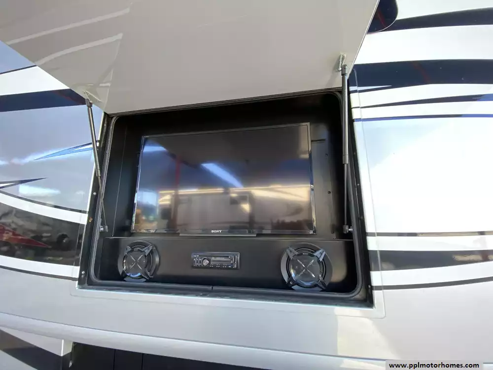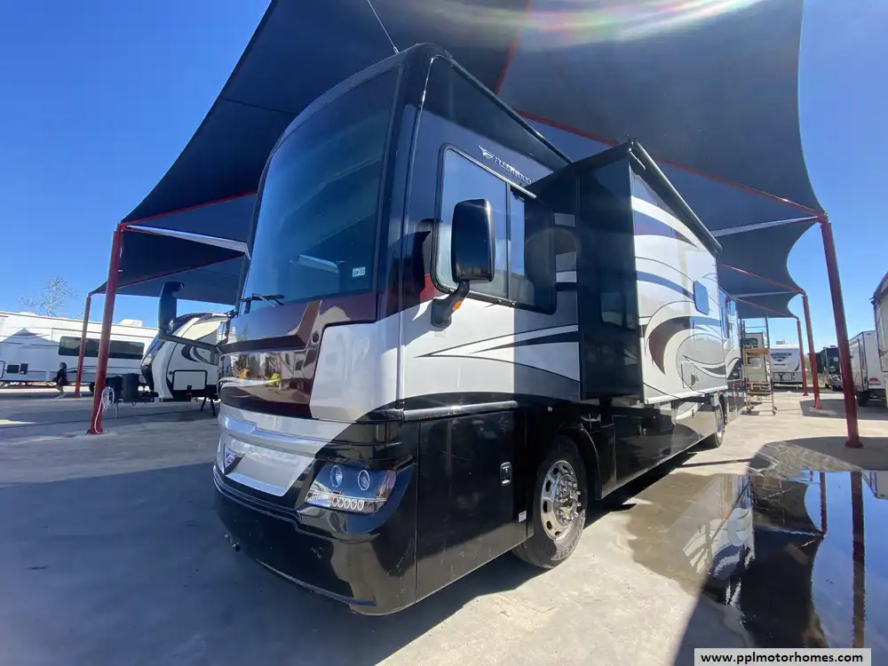 This 2016 Pace Arrow by Fleetwood 38B has a 340hp Cummins Engine On a Freightliner Chassis, Air Bag Suspension, Exhaust Brake, 2 Slide-outs, Onan Diesel Generator, 2 Ducted Air Conditioners, Levelers, Double Door Residential Whirlpool Refrigerator, Automatic Main Awning And Window/Slide/Door Awnings, Washer/Dryer, Backup Camera, GPS System, Outside Entertainment System, 6 TVs, DVD Player, Satellite Radio, Outdoor Grill, Convection Microwave, 3 Burner Range