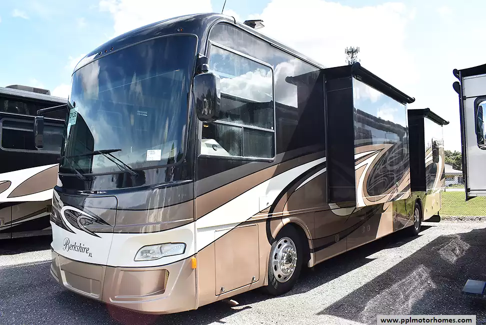 This 2016 Berkshire Xl 40RB has a 380hp Cummins Engine On a Spartan Chassis, Air Bag Suspension, Exhaust Brake, 4 Slide-outs, Onan Diesel Generator, 2 Ducted Air Conditioners, Levelers, Residential Frigidaire Refrigerator, In-Fridge Ice Maker, Automatic Main Awning And Window/Slide/Door Awnings, Washer/Dryer, Backup Camera, GPS System, Heated Tanks, Outside Entertainment System, 3 TVs, Outside Shower, Fireplace, Convection Microwave, 3 Burner Range