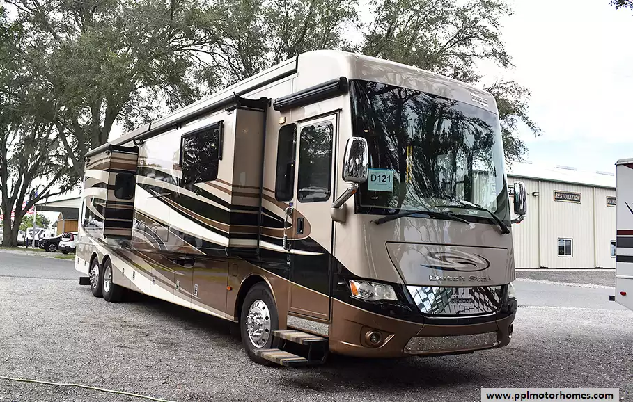This 2016 Dutch Star by Newmar 4369 has a 450hp Cummins Xc16 Cummins Engine On a Freightliner Chassis, Air Bag Suspension, Exhaust Brake, 3 Slide-outs, Onan Diesel Generator, 3 Ducted Air Conditioners, Levelers, 110v Whirlpool Refrigerator, Automatic Main Awning And Window/Slide/Door Awnings, Washer/Dryer, Backup Camera, GPS System, Solar Panel, Dishwasher, Satellite Dish & Receiver, Outside Entertainment System, 4 TVs, Satellite Radio, Outside Shower, Central Vacuum, Convection Microwave, 2 Burner Range