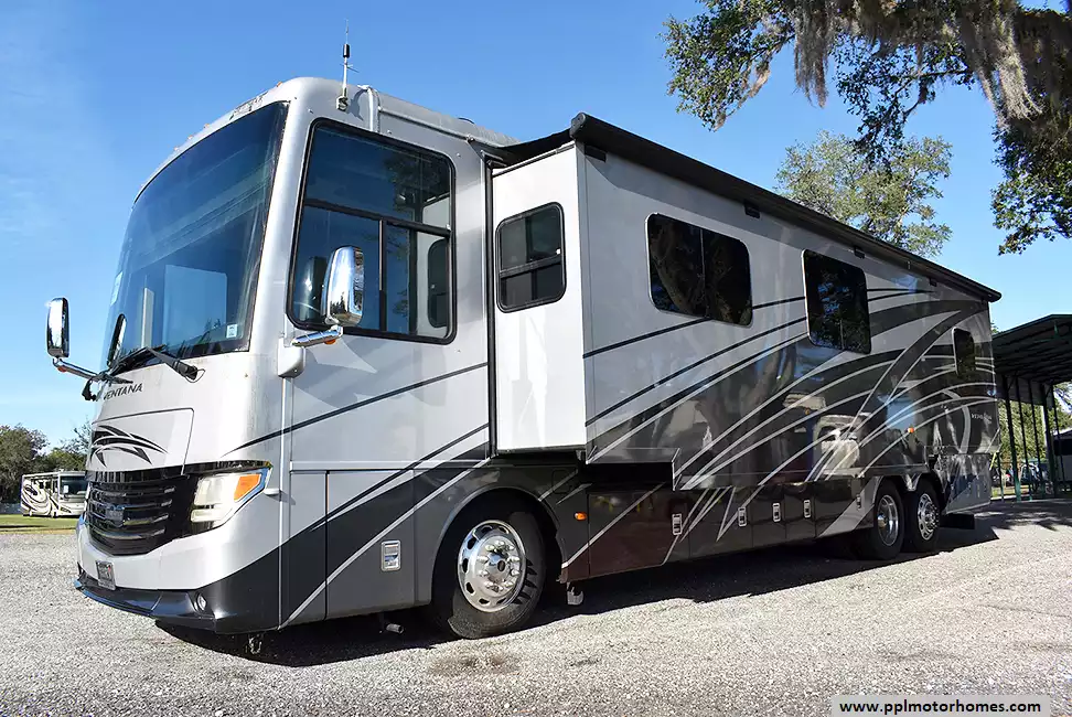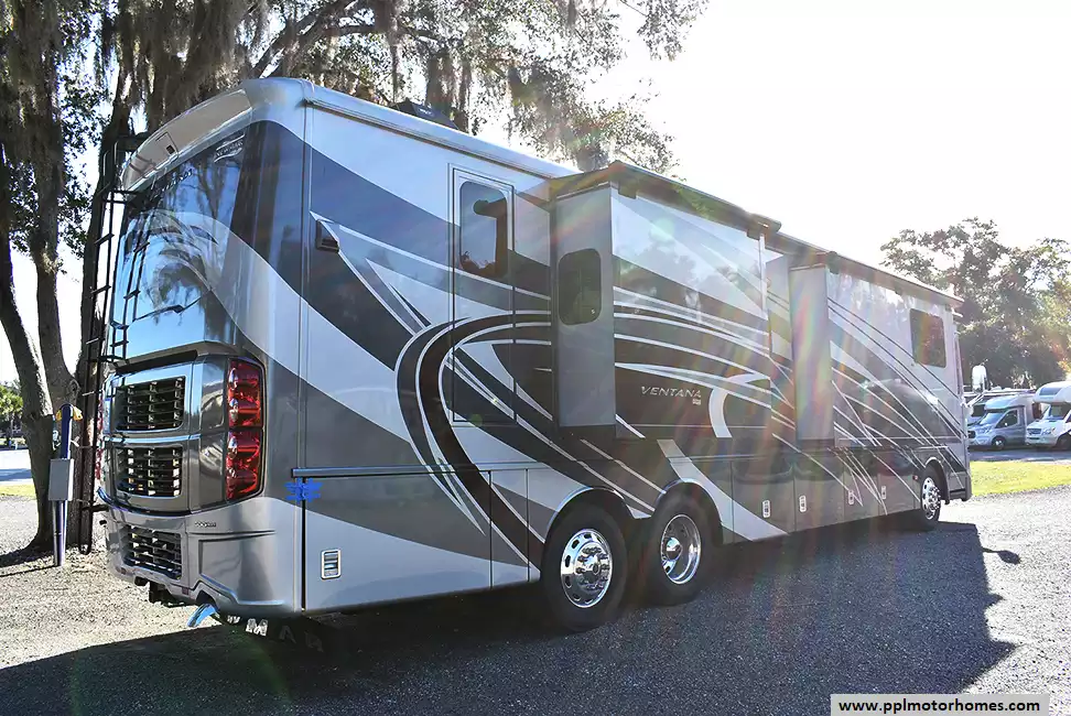 This 2016 Ventana 4037 has a 400hp Cummins Engine On a Freightliner Chassis, Air Bag Suspension, Exhaust Brake, 3 Slide-outs, Onan Diesel Generator, 2 Ducted Air Conditioners, Levelers, Residential Whirlpool Refrigerator, In-Fridge Ice Maker, Automatic Main Awning And Slide/Door Awnings, Washer/Dryer, Backup Camera, GPS System, Solar Panel, Heated Tanks, 2 TVs, 2 DVD Players, Outside Shower, Central Vacuum, Microwave, 3 Burner Range