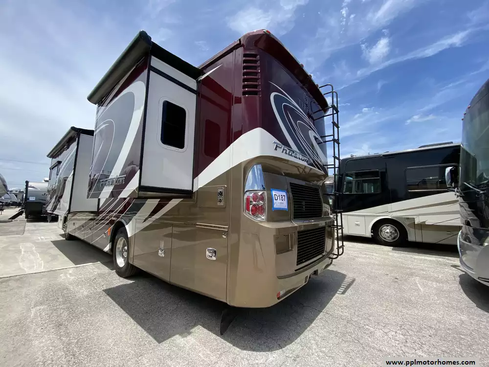 This 2016 Phaeton by Tiffin 36GH has a 380hp I6 Cummins Engine On a Freightliner Chassis, Air Bag Suspension, Exhaust Brake, 4 Slide-outs, Onan Diesel Generator, 2 Ducted Air Conditioners, Levelers, Double Door 110v Residential Maytag Refrigerator, In-Fridge Ice Maker, Automatic Main Awning And Window Awning, Washer/Dryer, Backup Camera, Satellite Dish & Receiver, 3 TVs, DVD Player, Outside Shower, Convection Microwave, 3 Burner Range
