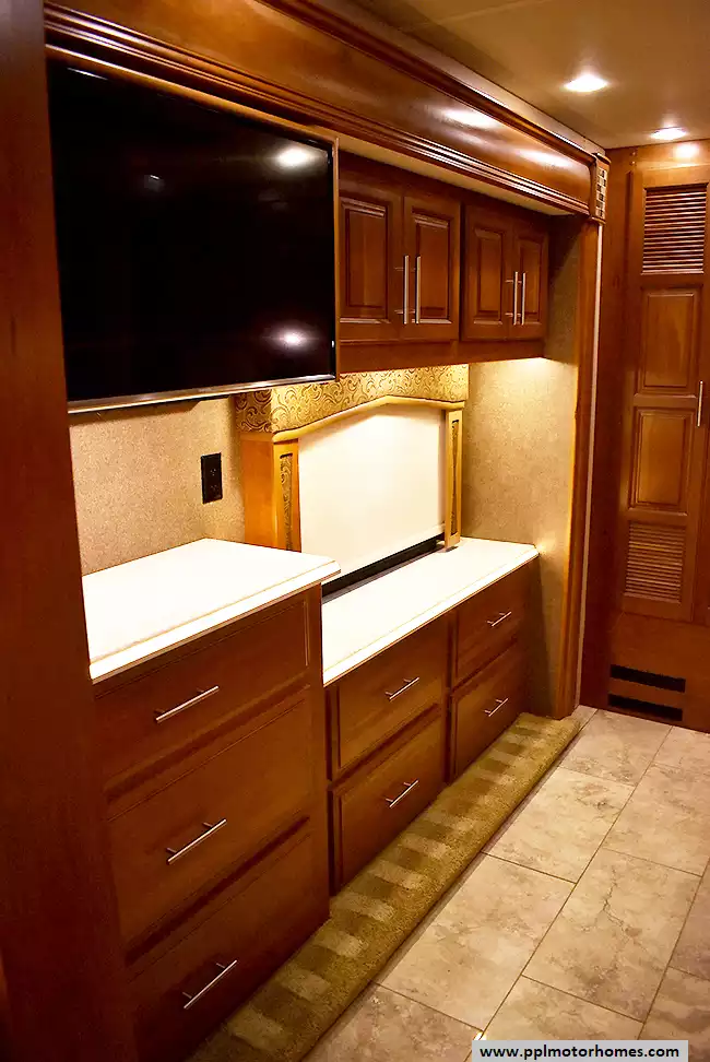 (Floor plan is NOT drawn to scale. Length of vehicle is approximate. Buyer is responsible for verifying actual length. PPL Motor Homes compiled this list of features, specifications, equipment and options as a guide. No representation or warranties, either express or implied, are made as to the accuracy of the information herein. Please verify for yourself all items listed before purchase.)