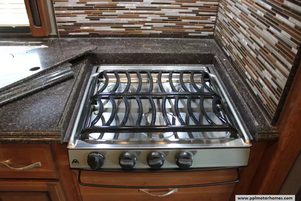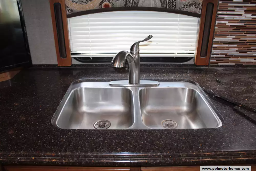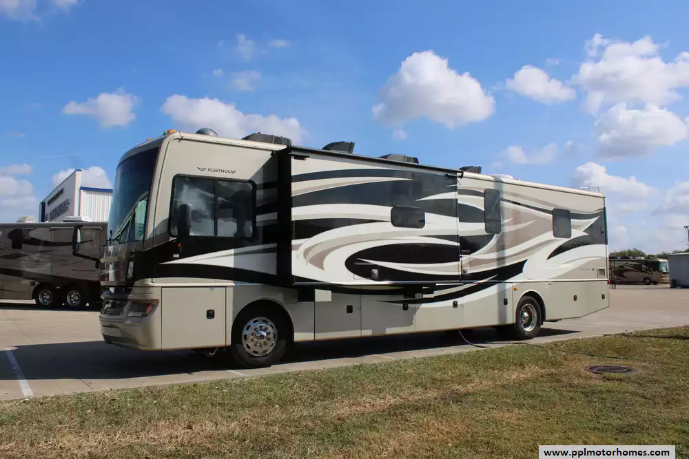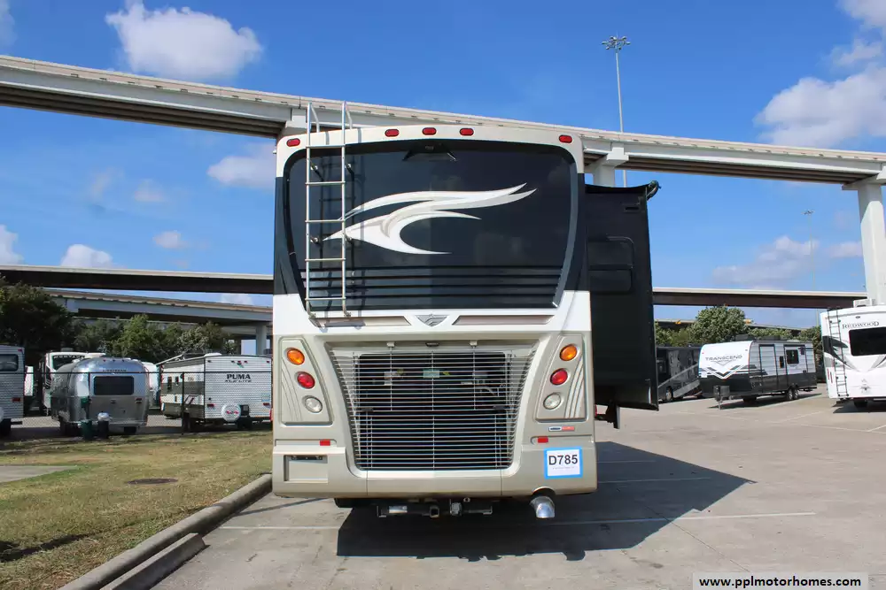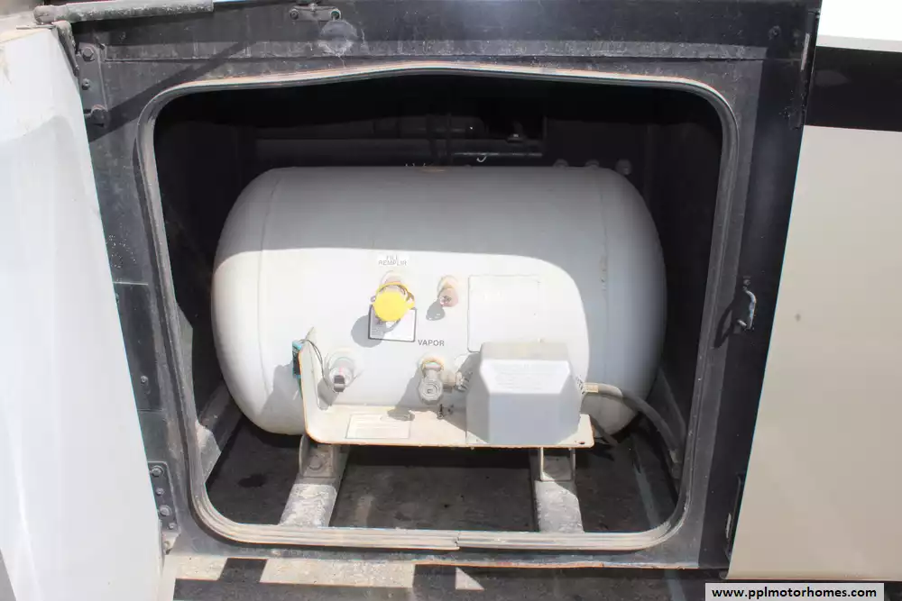 Specs: Length: 38.62 ft., Width: 8.5 ft., Height: 12.83 ft., Interior Height: 7 ft., Fuel Capacity: 100 gal., Total Fresh Water Tank Capacity: 105 gal., Total Gray Water Tank Capacity: 75 gal., Total Black Water Tank Capacity: 50 gal., Number of Propane Tanks: 1, Total Propane Tank Capacity: 164 lbs.