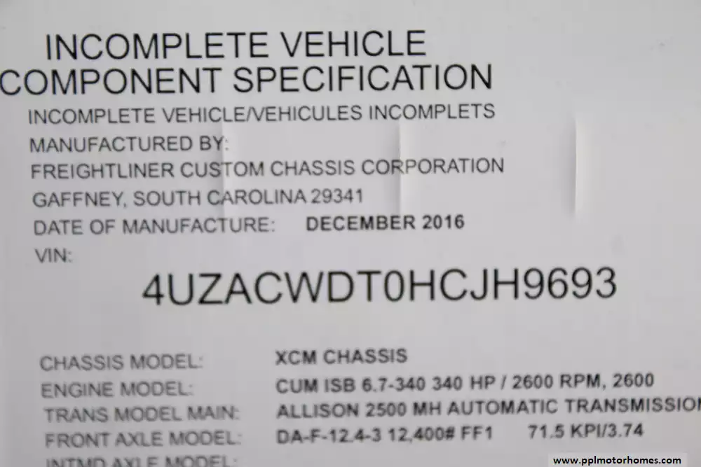 This 2017 Pace Arrow Lxe 38B is built for comfort, especially for families or groups. Amenities Include...340hp I6 6.7l Cummins Engine On a Freightliner Chassis, Air Bag Suspension, Exhaust Brake, 2 Slide-outs, Onan Diesel Generator, 2 Ducted Air Conditioners, Levelers, Double Door Residential Refrigerator, In-Fridge Ice Maker, Automatic Main Awning And Window/Slide/Door Awnings, Washer/Dryer, Backup Camera, GPS System, Heated Tanks, Satellite Dish & Receiver, Outside Entertainment System, 4 TVs, Satellite Radio, Outside Shower, Central Vacuum, Convection Microwave, and 3 Burner Range.