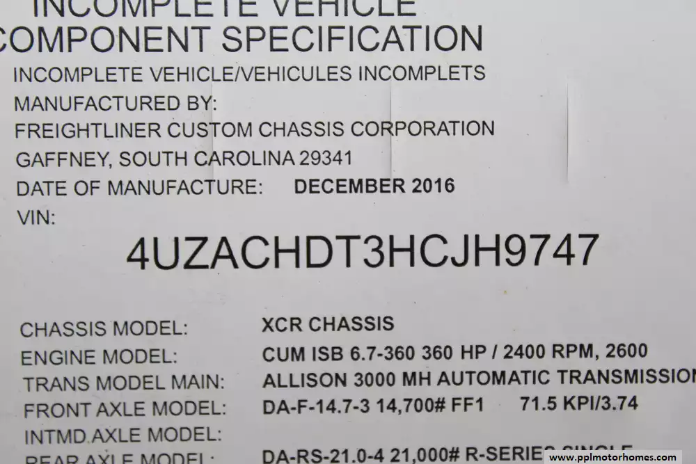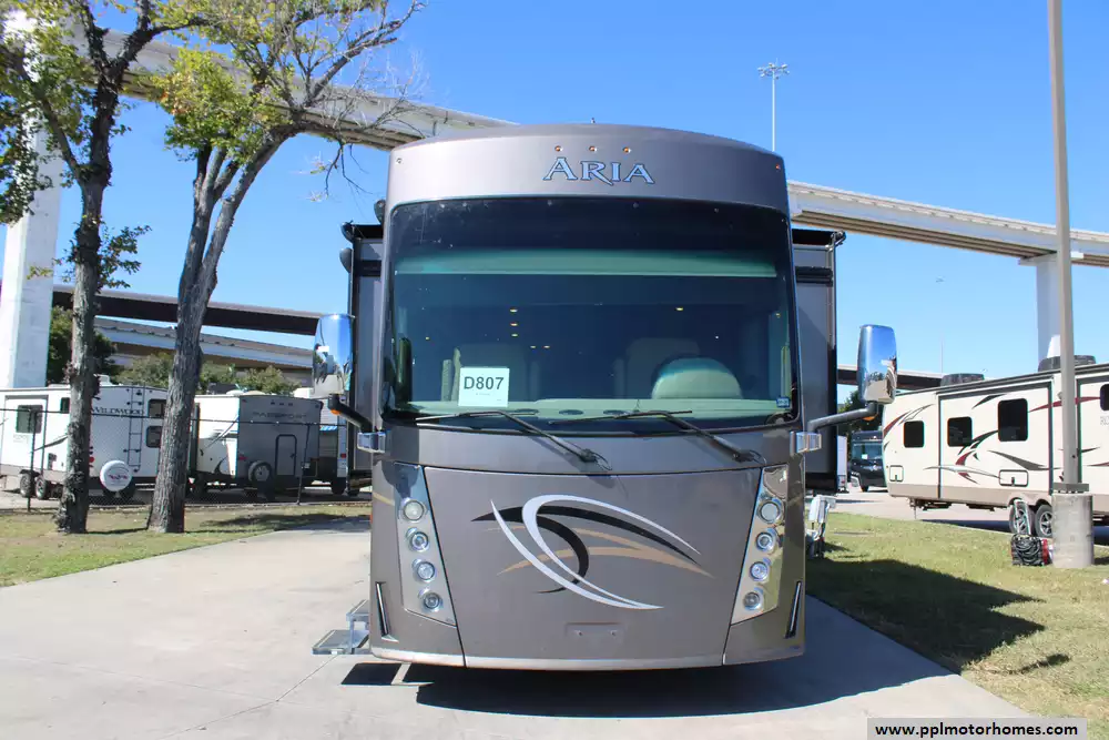 This 2017 Aria 3901 strikes a balance between luxury, size,and performance for people wanting a top-tier diesel pusher with almost every amenity you'd expect in a high-end coach.Features Include...360hp 6.7l Cummins Engine On a Freightliner Chassis, Air Bag Suspension, Exhaust Brake, 3 Slide-outs, Onan Diesel Generator, 2 Ducted Air Conditioners, Levelers, Double Door Residential Whirlpool Refrigerator, Automatic Main Awning And Slide/Door Awnings, Washer/Dryer Connections, Backup Camera, Solar Panel, Satellite Dish, Outside Entertainment System, 4 TVs, Outside Shower, Convection Microwave,and Induction Range.It's very comfortable,well-appointed interior with residential touches.
