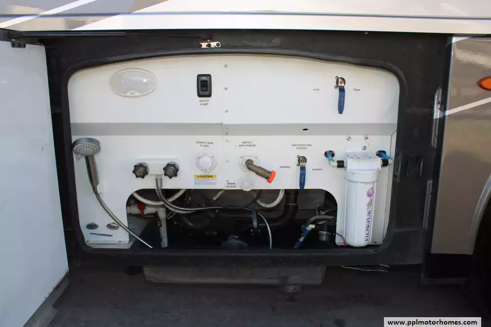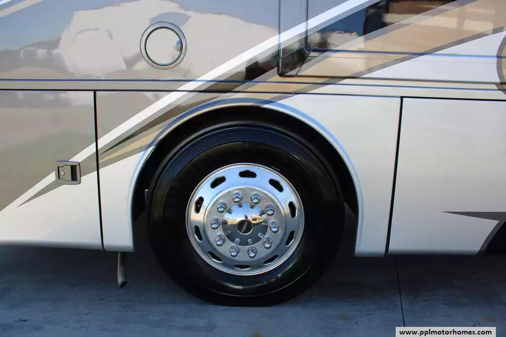 Specs: Length: 39.11 ft., Width: 8.5 ft., Height: 13.1 ft., Interior Width: 7 ft., Interior Height: 7.6 ft., Fuel Capacity: 100 gal., Total Fresh Water Tank Capacity: 91 gal., Total Gray Water Tank Capacity: 51 gal., Total Black Water Tank Capacity: 51 gal., Number of Propane Tanks: 1, Total Propane Tank Capacity: 24.5 gal.
