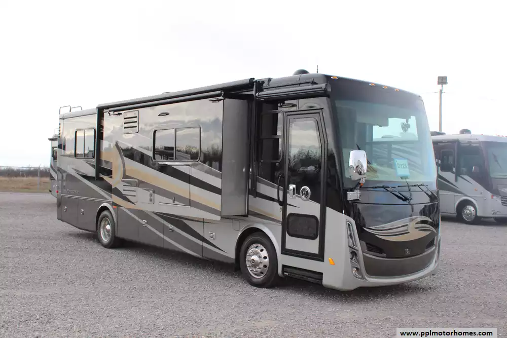 This 2017 Breeze 32BR has a 275hp V8 5.0 Cummins Engine On a Powerglide Chassis, Air Bag Suspension, 2 Slide-outs, Onan Diesel Generator, 2 Ducted Air Conditioners, Levelers, Double Door Gas/110v Dometic Refrigerator, In-Fridge Ice Maker, Automatic Main Awning And Slide Awning, Backup Camera, Outside Entertainment System, 4 TVs, Outside Shower, Convection Microwave, 2 Burner Range
