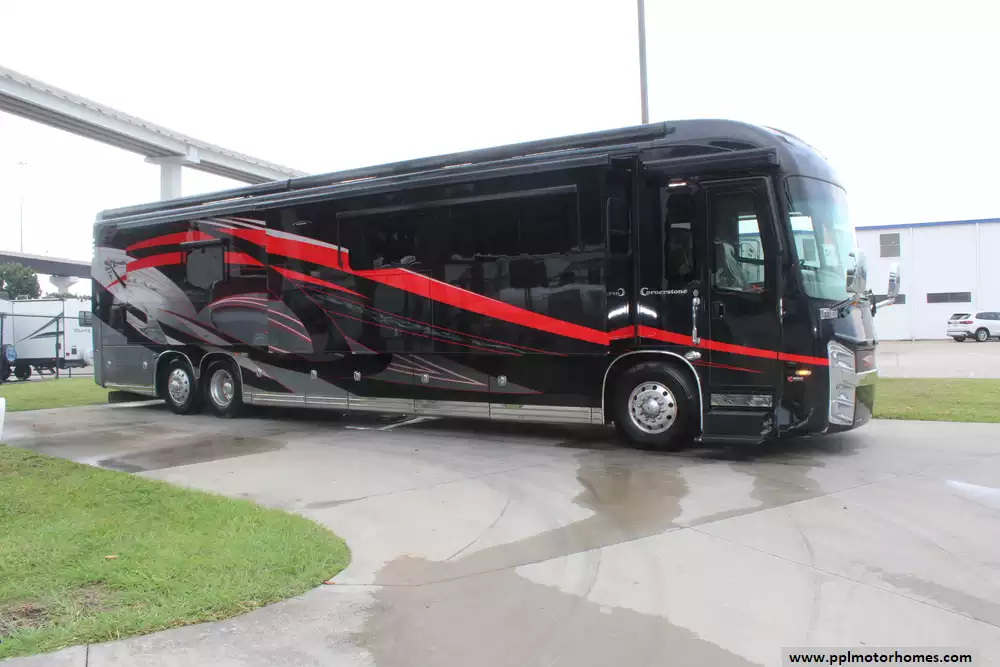 This 2018 Cornerstone 45F is a top-tier diesel coach blending powerful performance with residential-level comfort and cutting-edge systems. Amenities Include...605hp 15-Liter Isx Cummins Engine On a Spartan Chassis, Air Bag Suspension, Exhaust Brake, 4 Slide-outs, Onan Diesel Generator, 3 Ducted Air Conditioners, Levelers, 110v Residential Whirlpool Refrigerator, In-Fridge Ice Maker, Exterior Freezer, Automatic Main Awning And Window/Slide/Door Awnings, Powered Basement Trays, Keyless Entry, Washer/Dryer, Backup Camera, GPS System, Heated Tanks, Satellite Dish, Outside Entertainment System, 4 TVs, Outside Shower, Dishwasher, Central Vacuum, Convection Microwave, and 2 Burner Induction Range. Ideal for long-haul travelers seeking space, power, and full-featured living amenities on the road.