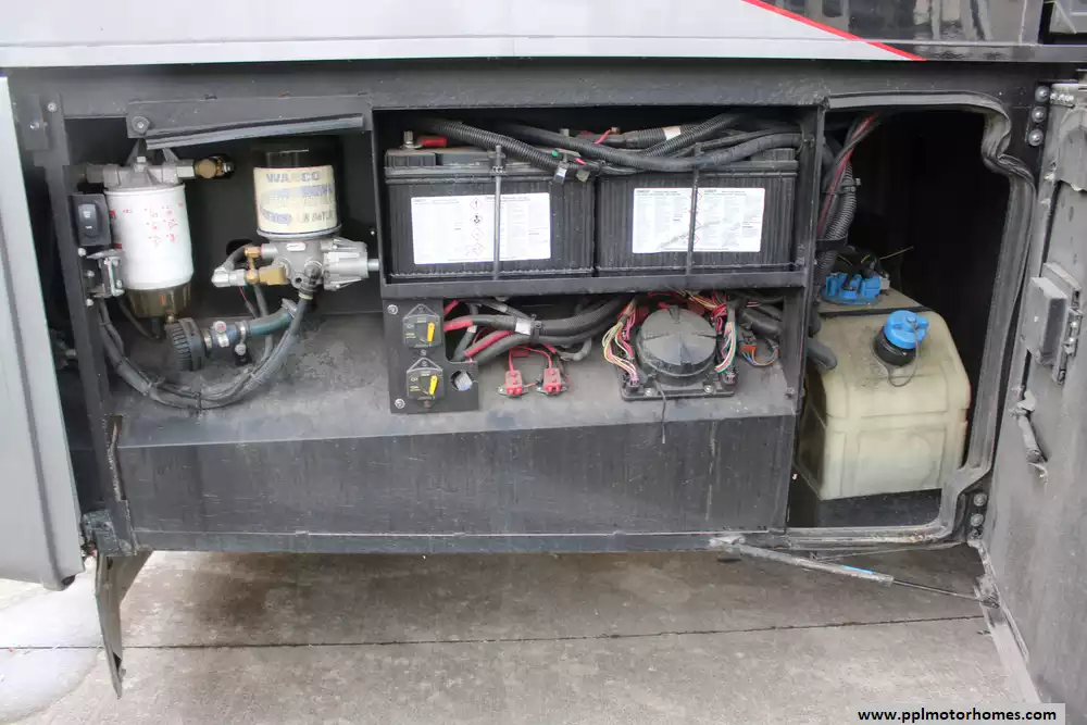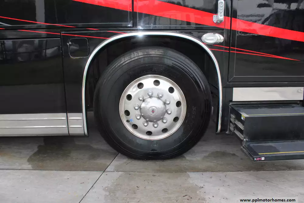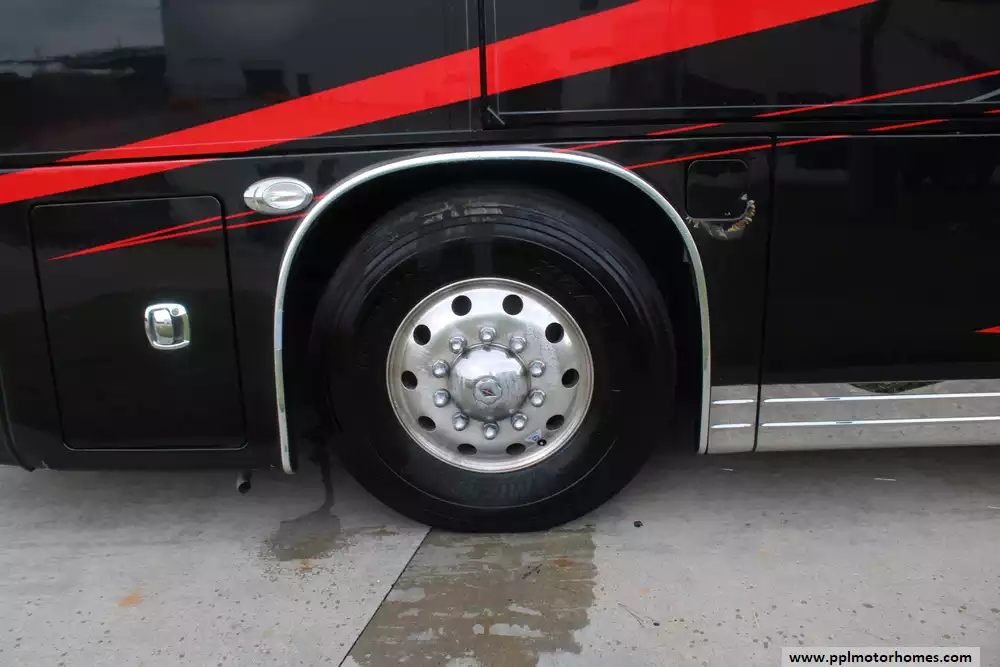 Specs: Length: 44.92 ft., Width: 8.42 ft., Height: 12.92 ft., Interior Height: 7 ft., Fuel Capacity: 150 gal., Total Fresh Water Tank Capacity: 100 gal., Total Gray Water Tank Capacity: 62 gal., Total Black Water Tank Capacity: 41 gal.
