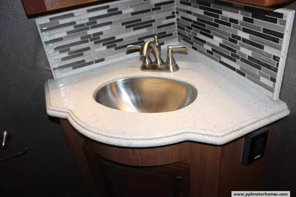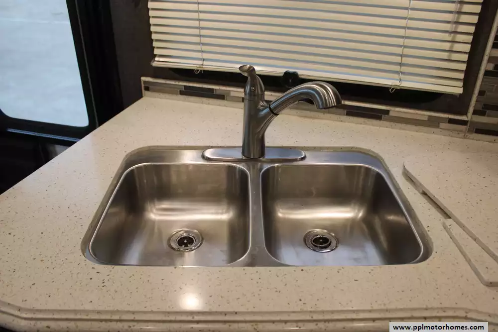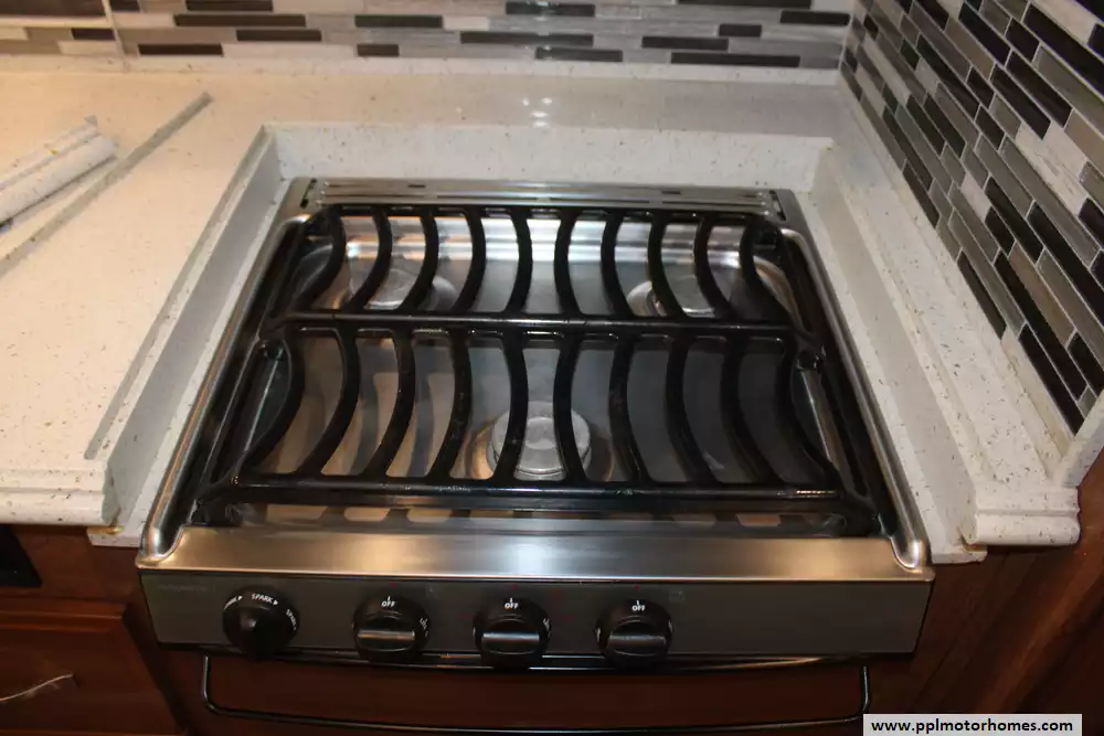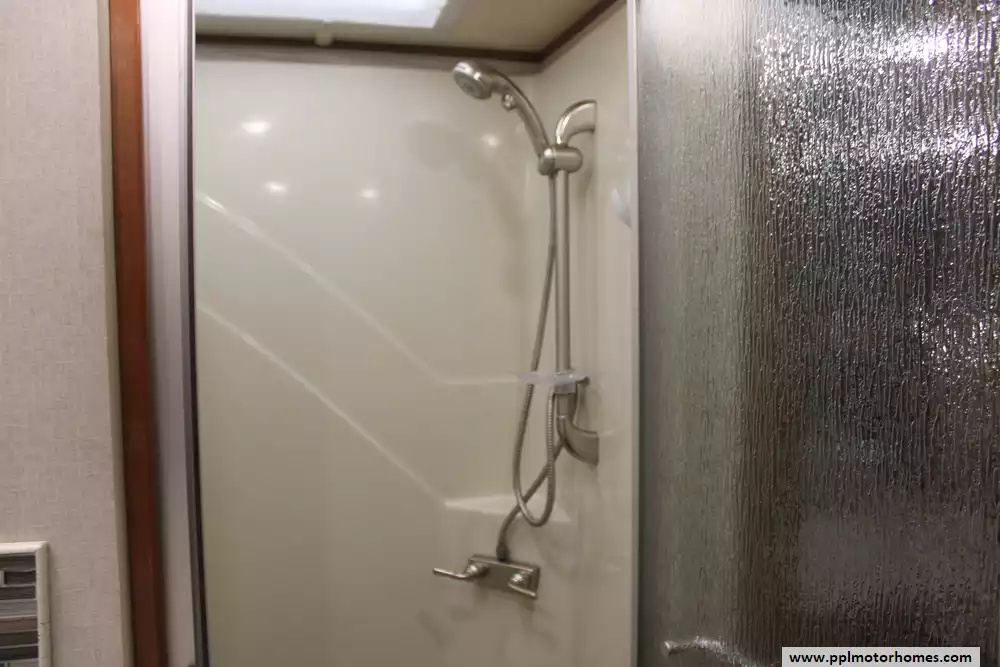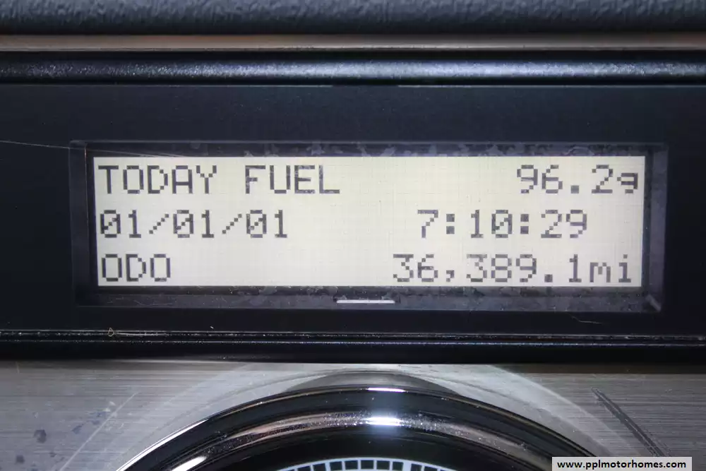 Specs: Length: 37.7 ft., Height: 11.10 ft., Width: 8.5 ft., Interior Height: 7 ft., Interior Width: 8 ft., Fuel Capacity: 90 gal., Total Fresh Water Tank Capacity: 77 gal., Total Gray Water Tank Capacity: 60 gal., Total Black Water Tank Capacity: 32 gal., Total Propane Tank Capacity: 28.2 gal.