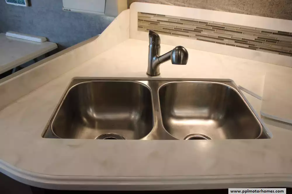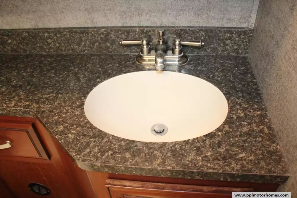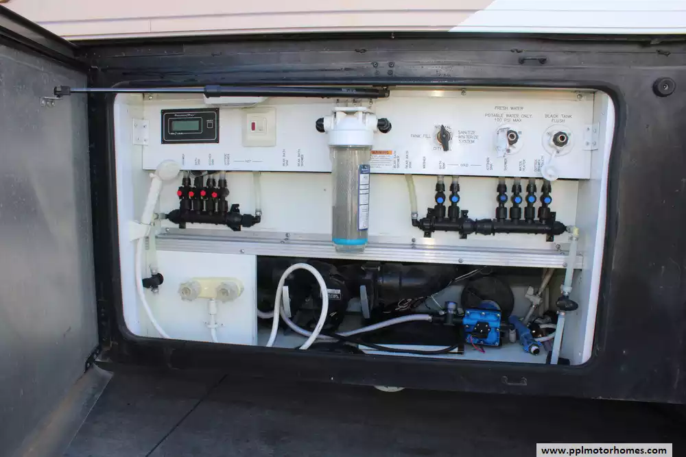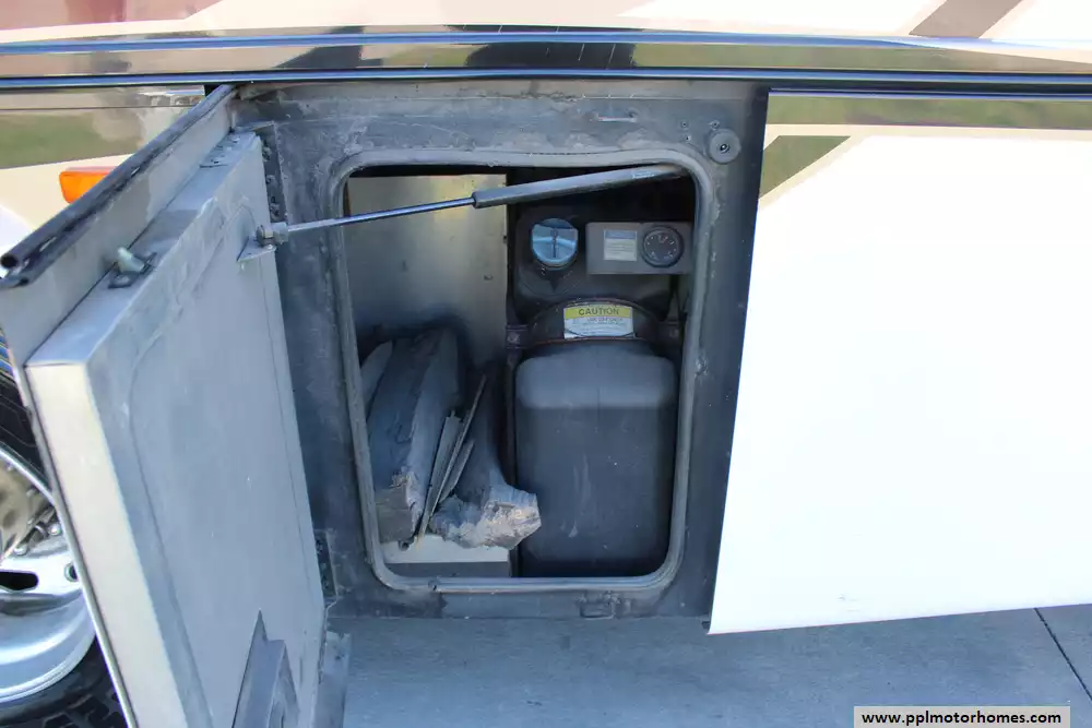 Specs: Length: 35.7 ft., Width: 8.33 ft., Height: 12.7 ft., Total Fresh Water Tank Capacity: 103 gal., Total Gray Water Tank Capacity: 66 gal., Total Black Water Tank Capacity: 42 gal., Total Propane Tank Capacity: 24.5 lbs.