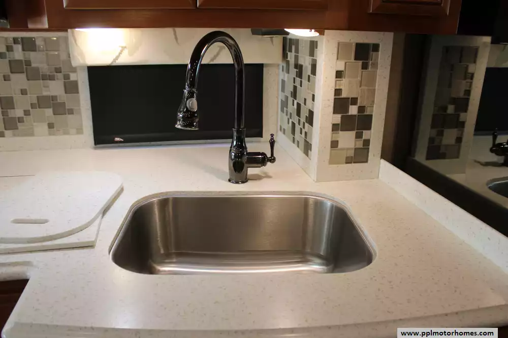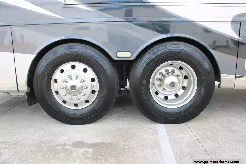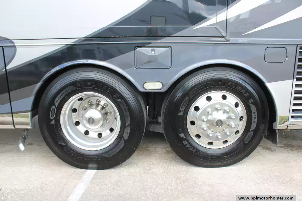Specs: Length: 40.09 ft., Width: 8.45 ft., Height: 13 ft., Interior Height: 6.91 ft., Interior Width: 7.95 ft., Total Fresh Water Tank Capacity: 105 gal., Total Gray Water Tank Capacity: 65 gal., Total Black Water Tank Capacity: 45 gal., Number of Propane Tanks: 1.