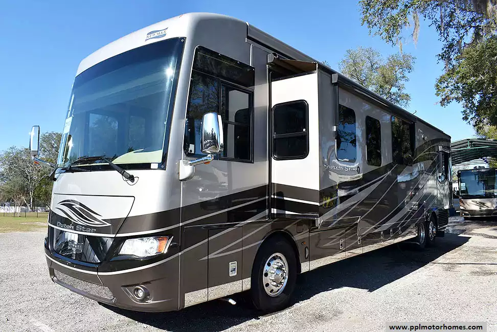 2018 Newmar Dutch Star 4369 Luxury Diesel PusherThis 2018 Newmar Dutch Star 4369 is a top-of-the-line Class A diesel pusher offering comfort, power, and premium craftsmanship. Powered by a 450HP Cummins diesel engine on a Freightliner tag-axle chassis, this coach delivers a smooth, confident ride with excellent towing capability.