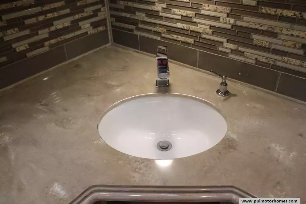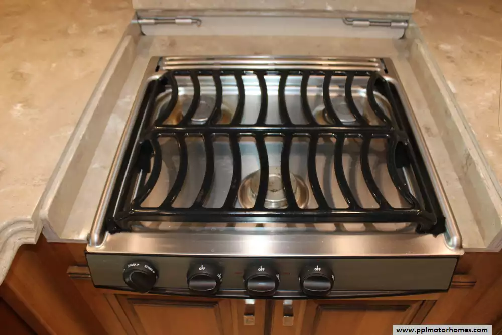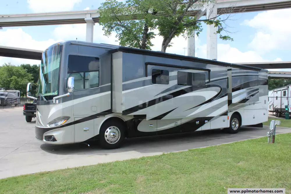 Specs: Length: 41.4 ft., Width: 8.41 ft., Height: 12.7 ft., Interior Height: 7 ft., Interior Width: 8 ft., Fuel Capacity: 100 gal., Total Fresh Water Tank Capacity: 90 gal., Total Grey Tank Capacity: 66 gal., Total Black Water Tank Capacity: 50 gal., Propane Tank Capacity: 35.7 gal.